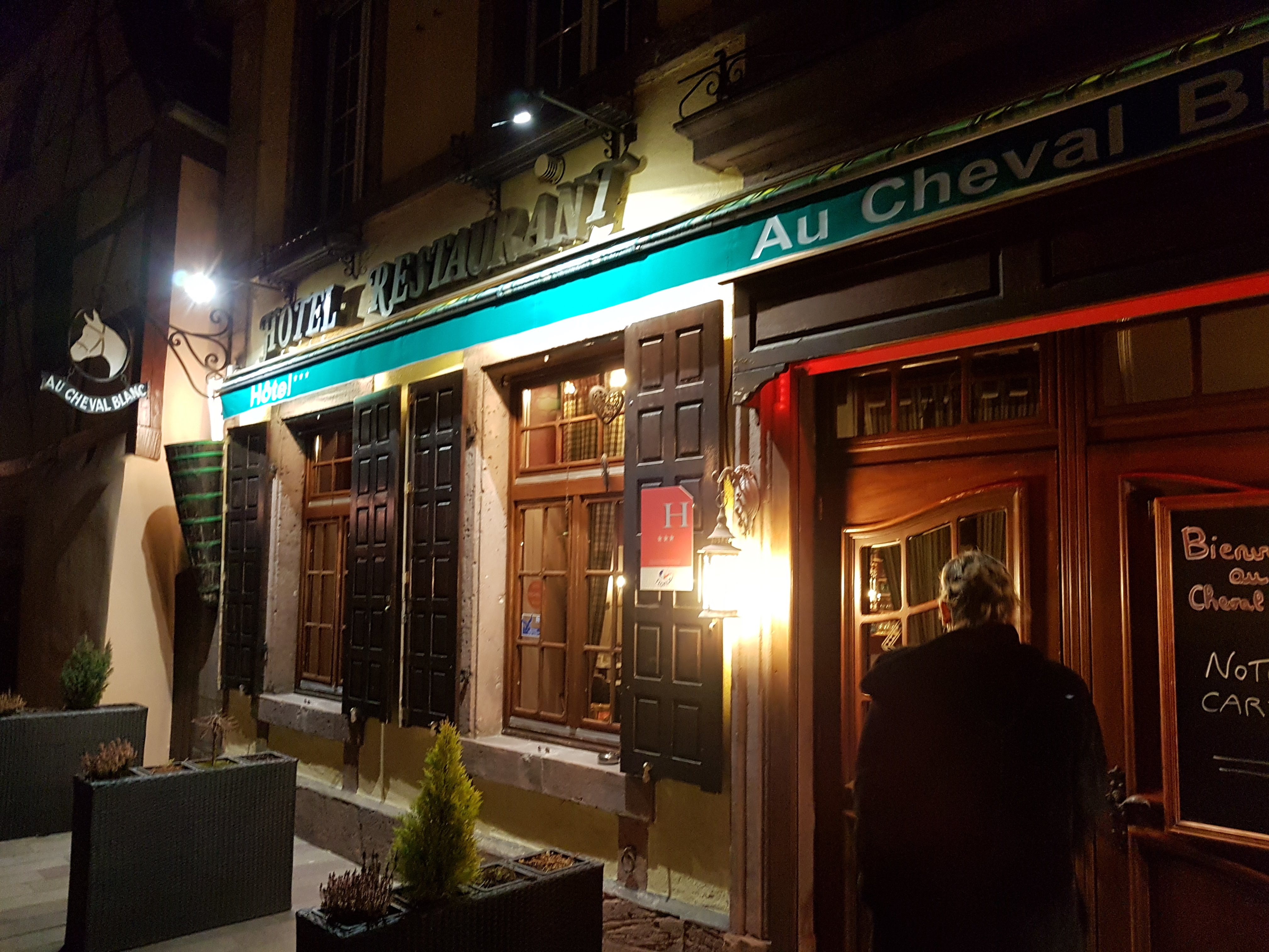Nous sommes venus à Ribeauvillé début Mars, ville très calme par rapport à la période de Noël et difficile de trouver un restaurant ouvert. Nous avons jeté un œil sur la carte du Cheval Blanc et avons décidé de pousser la porte. A peine installé, nous nous sentons bien, accueil, ambiance et climat familial avec une serveuse et serveur très sympathique. Nous optons pour le menu (entrée + plat) foie gras, raviolis à la truffe pour Madame et bouchée à la reine (une merveille) pour moi pour finir avec deux expresso excellents. Nous quittons le restaurant satisfait d'avoir passé un bon moment avec des crus Alsaciens, un repas savoureux et une addition dans la moyenne. Un grand merci à vous et toute votre équipe. PS : Le revêtement de votre bar dénote un peu, un petit investissement embellirait encore plus votre salle. Cordialement Laurent et Gecika