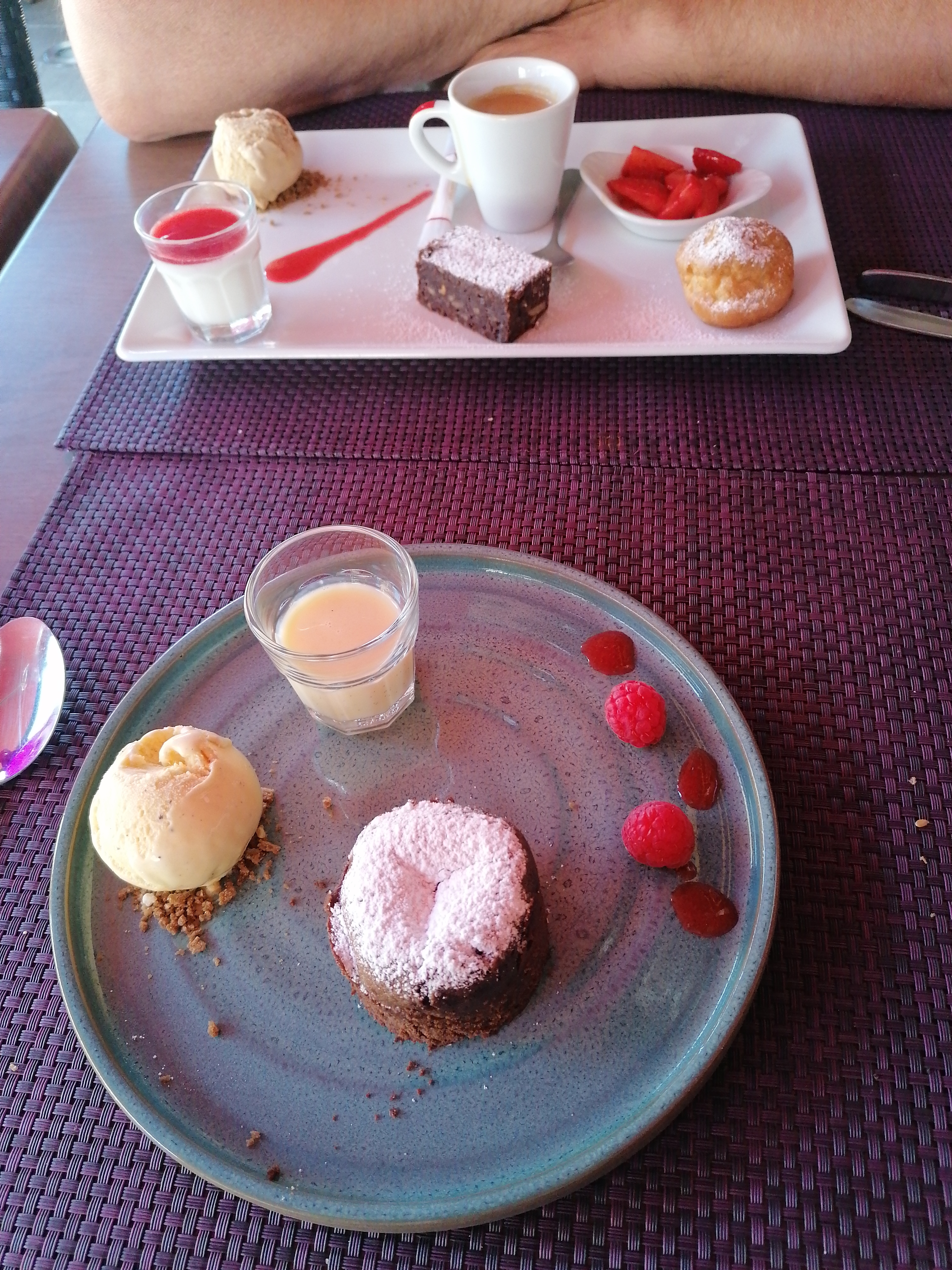 Le cadre est magnifique. Le choix des plats et correct. Et tes bons Le service très bien bravo pour le serveur c était son premier jour pas de faire pas