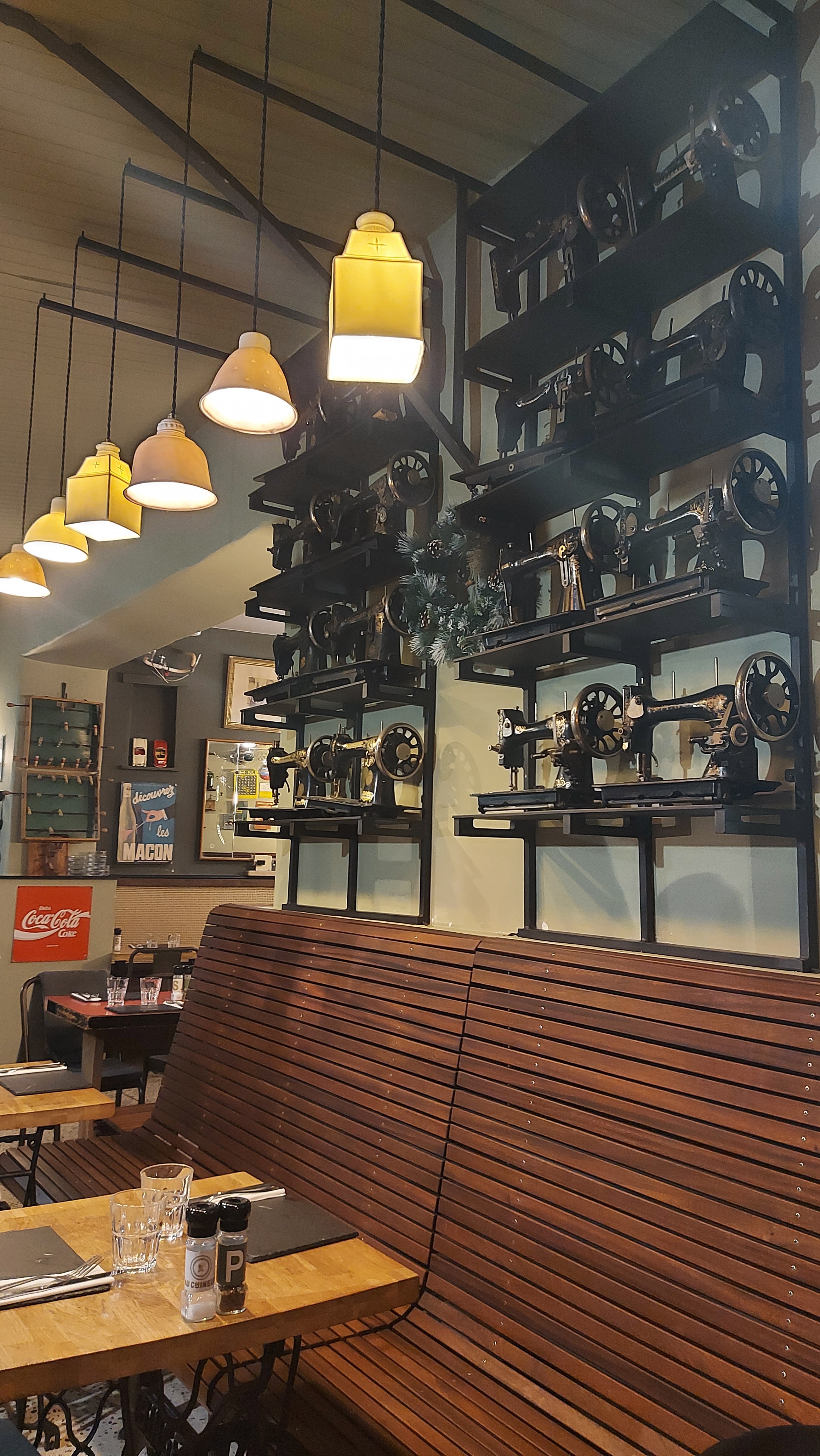 Nous sommes venus avec mon époux et la plus jeune de mes filles, 2 soirs de suite. Le premier soir en bas, sur les tables singer et le lendemain en haut. Le service est ultra rapide, la serveuse est très agréable. L'ambiance est chaleureuse et conviviale. La cuisine est copieuse et familiale. Merci pour cet agréable moment en famille.