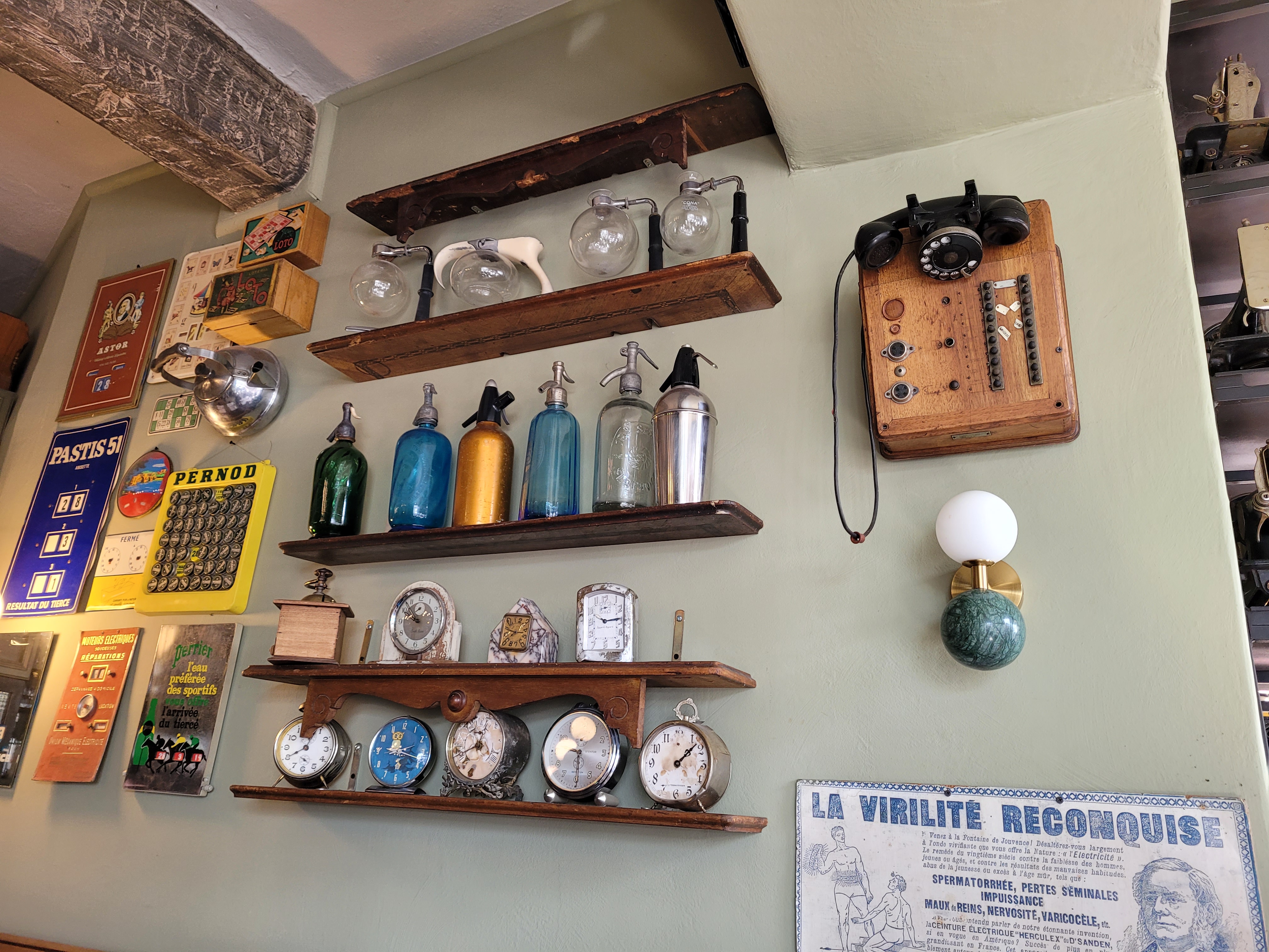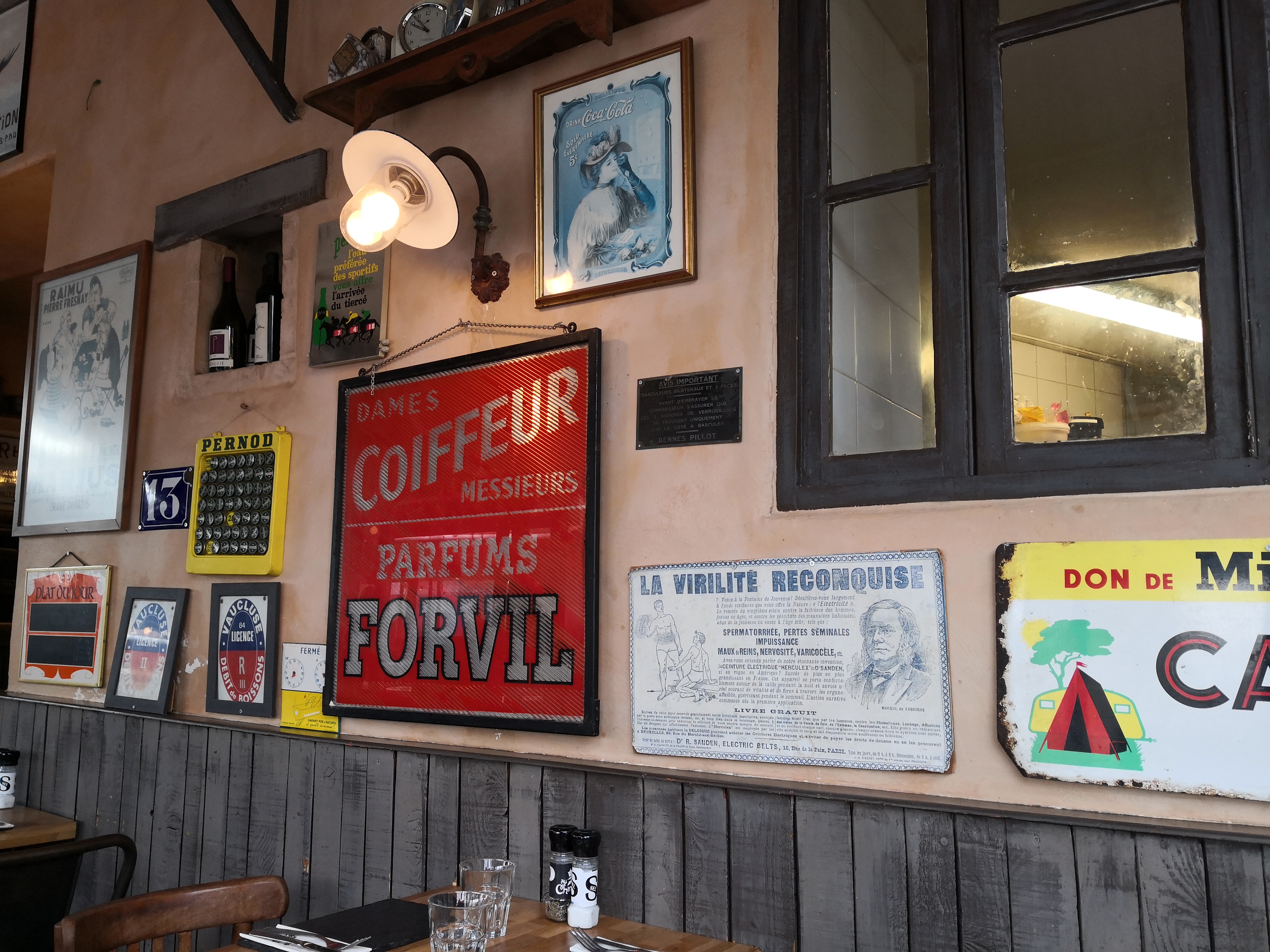 C'est un véritable bistrot à l'ancienne, la décoration ne semble pas avoir bougé depuis les années 70. L'endroit est très agréable et change des concept. Tout est patiné et il porte bien son nom. Bon accueil, on y mange correctement avec une jolie vue, juste en face des fameuses galeries d'antiquaires.