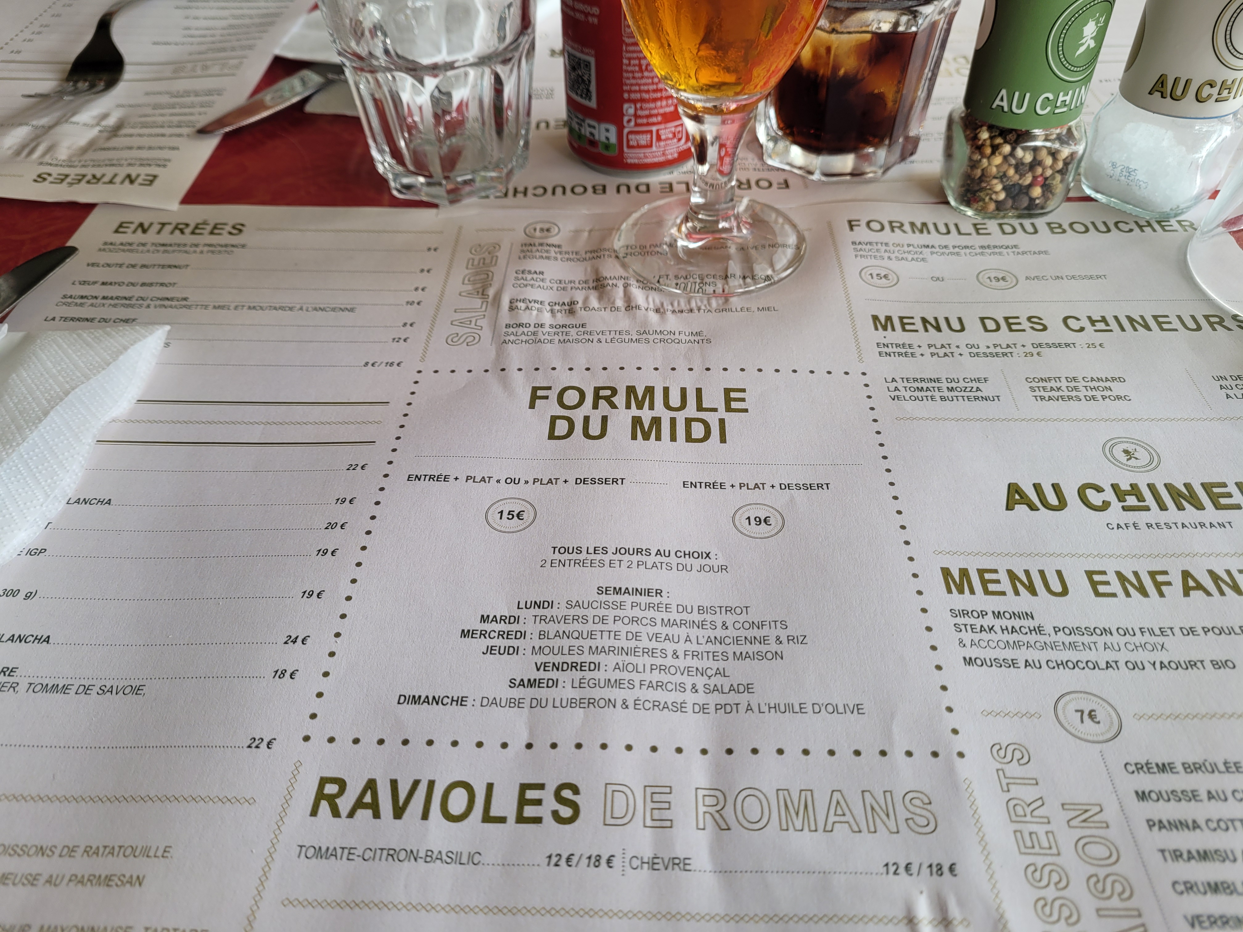 Nous nous sommes arrêtés au chineur pour une pause déjeuner en ville lors du marché dominical. Les plats sont de type brasserie avec un bon rapport qualité prix. Certes ce n'est pas un gastronomique, mais pour qui cherche un endroit convivial et des plats copieux et qualitatifs, vous êtes au bon endroit. La cadre rétro est plaisant. Les terrasses en bord de sorgue agréables. Le quartier animé sympa. Et une belle vue sur les quais et la sorgue.
