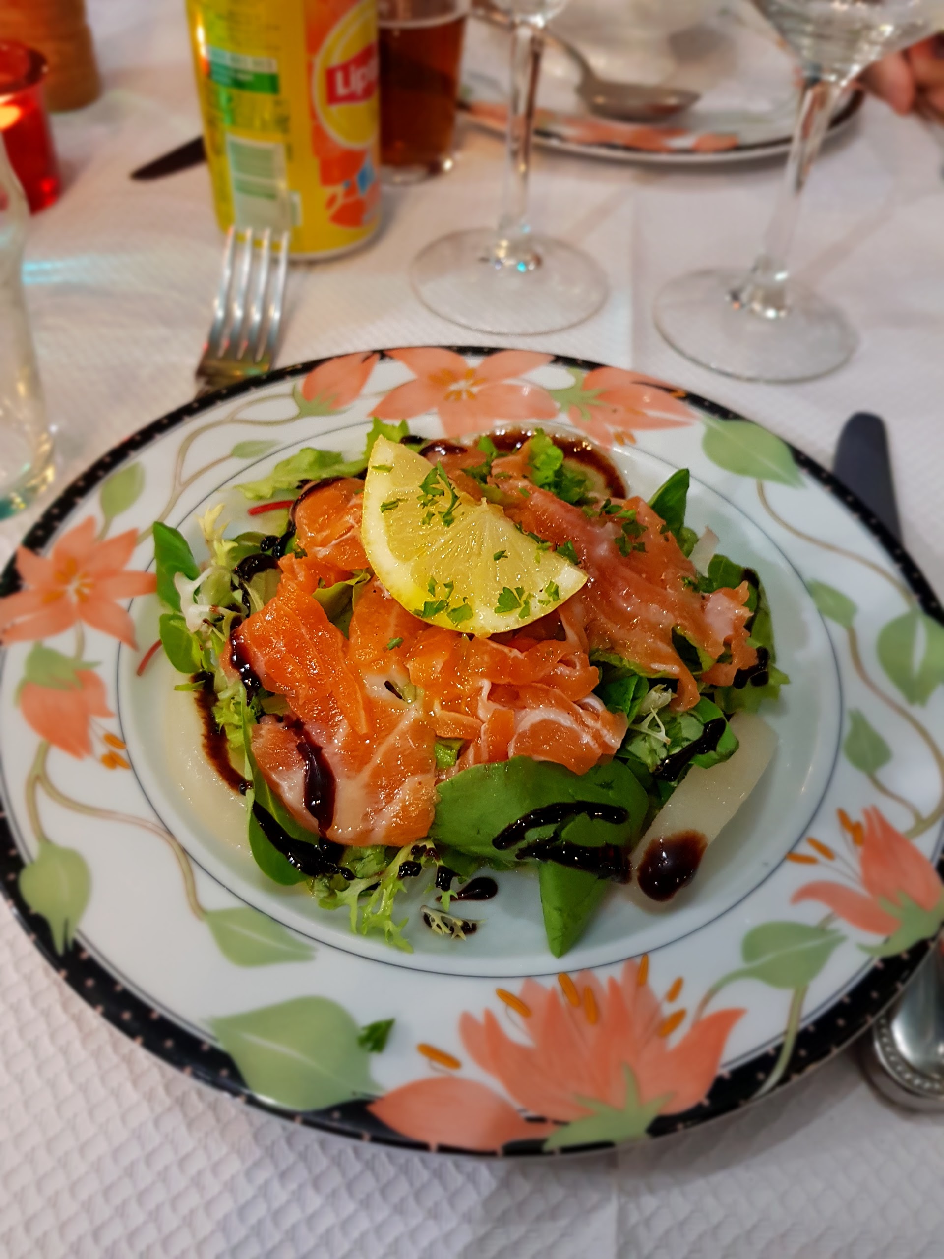 Entrée ratée : salade au saumon passé ! Un geste commercial aurait été apprécié. Le reste pas mal mais produits pas frais, surgelés. Je ne recommande pas.