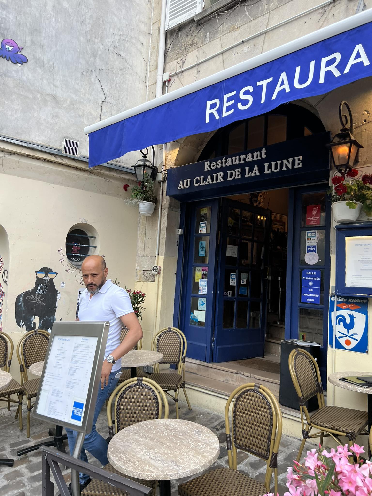 Le restaurant se trouve à l'écart des principales rues touristiques sur le chemin du musée Dali. J'ai toujours pensé que les restaurants éloignés des rues principales avaient tendance à proposer une meilleure cuisine. Au Clair de la Lune n'a pas déçu. Nous avons commandé le Confit de Canard (canard) et le Filet de Bar (bar). Les deux étaient délicieux. Le canard était particulièrement bon. C'est bien mariné et la viande était tendre. J'ai fortement recommandé le restaurant pour leur nourriture. Le serveur était très sympathique et parlait suffisamment anglais pour expliquer le menu et prendre nos commandes.