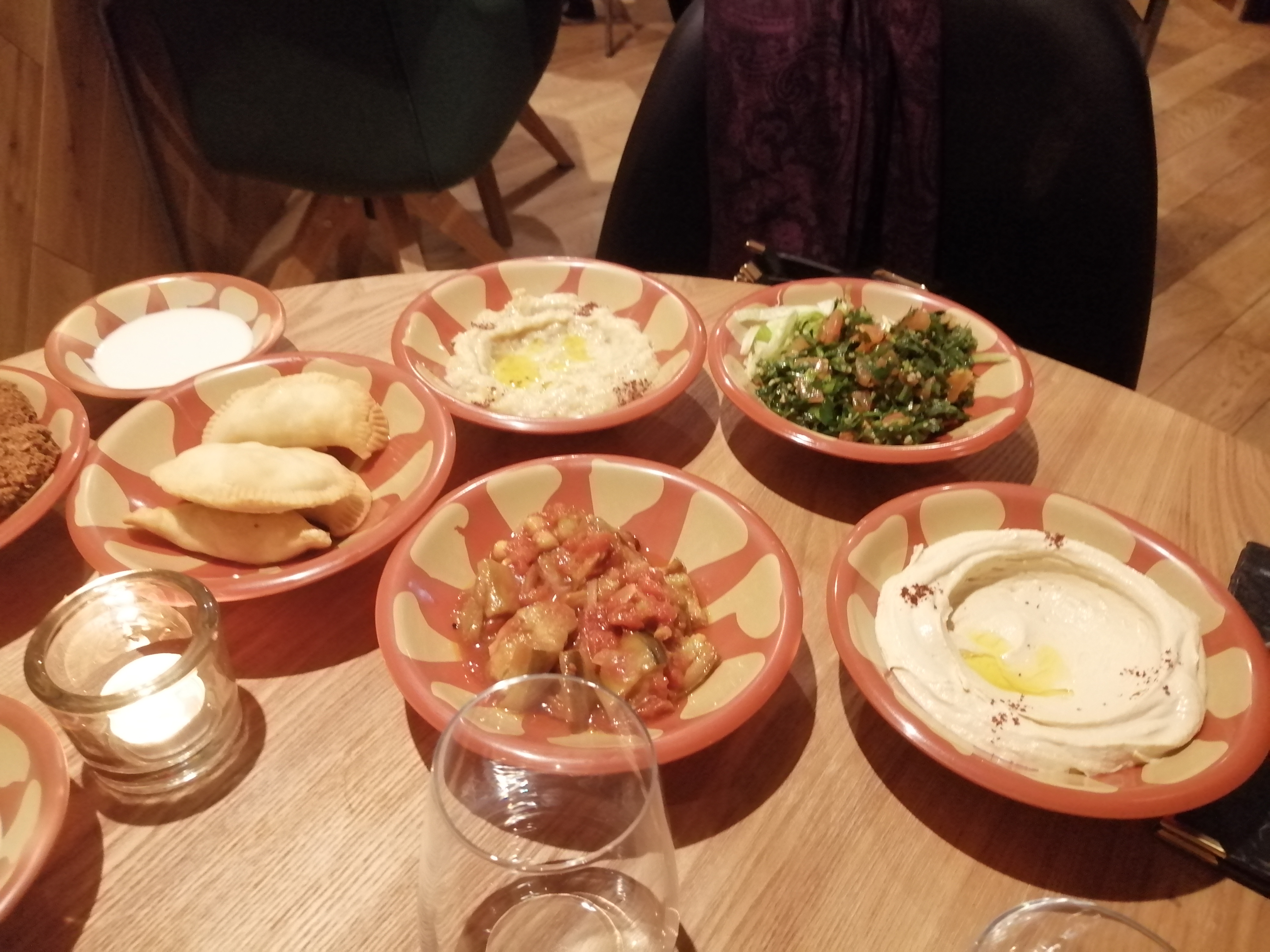 Mezze et falafel très bons et service efficace. Mais salle très bruyante / non insonorisée. Si en plus groupe nombreux est présent votre dîner est gâché. Par ailleurs refus de service pour les petits mangeurs comme ma femme. Chaque convive doit prendre un grand plat (très copieux) même si les 3 quarts finissent à la poubelle. Dommage!