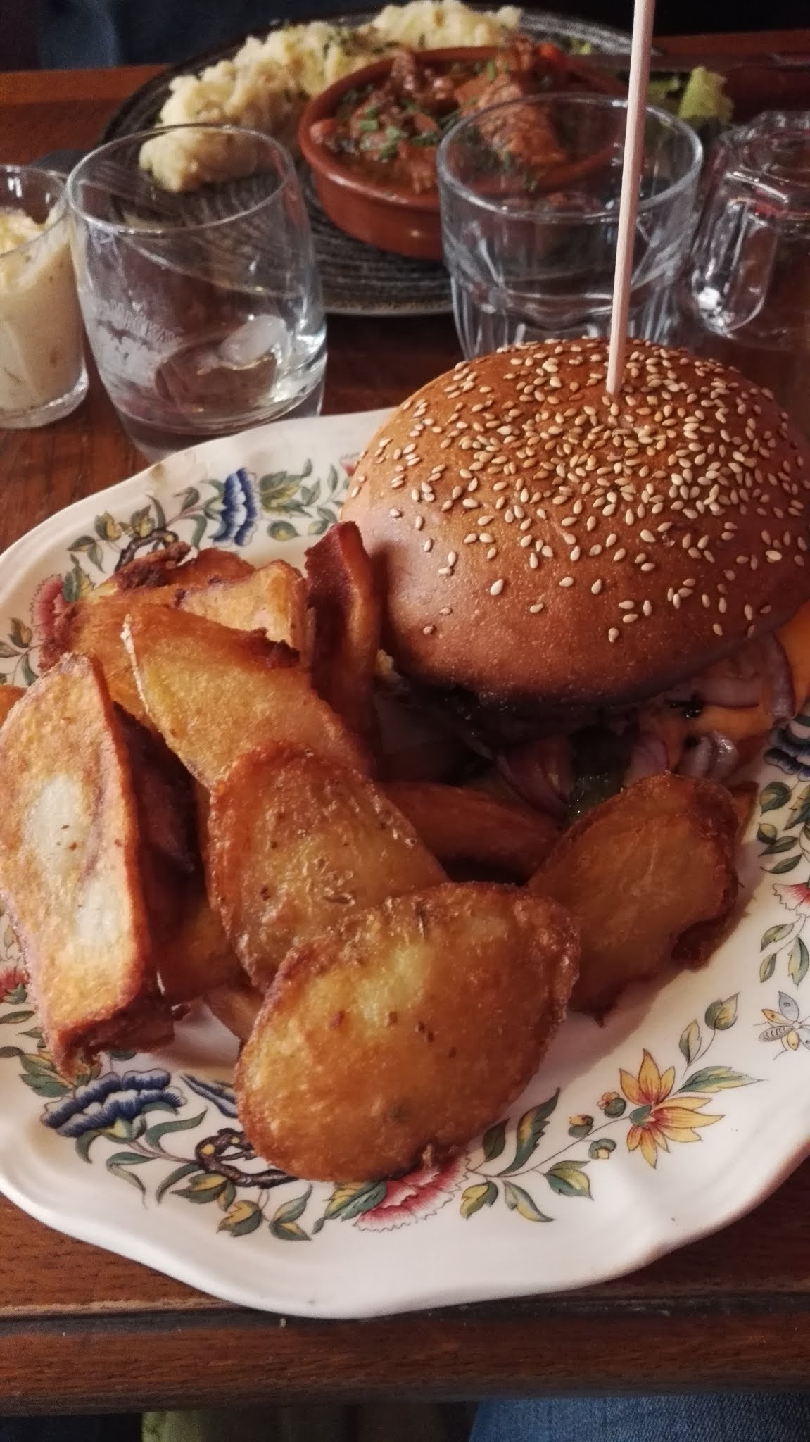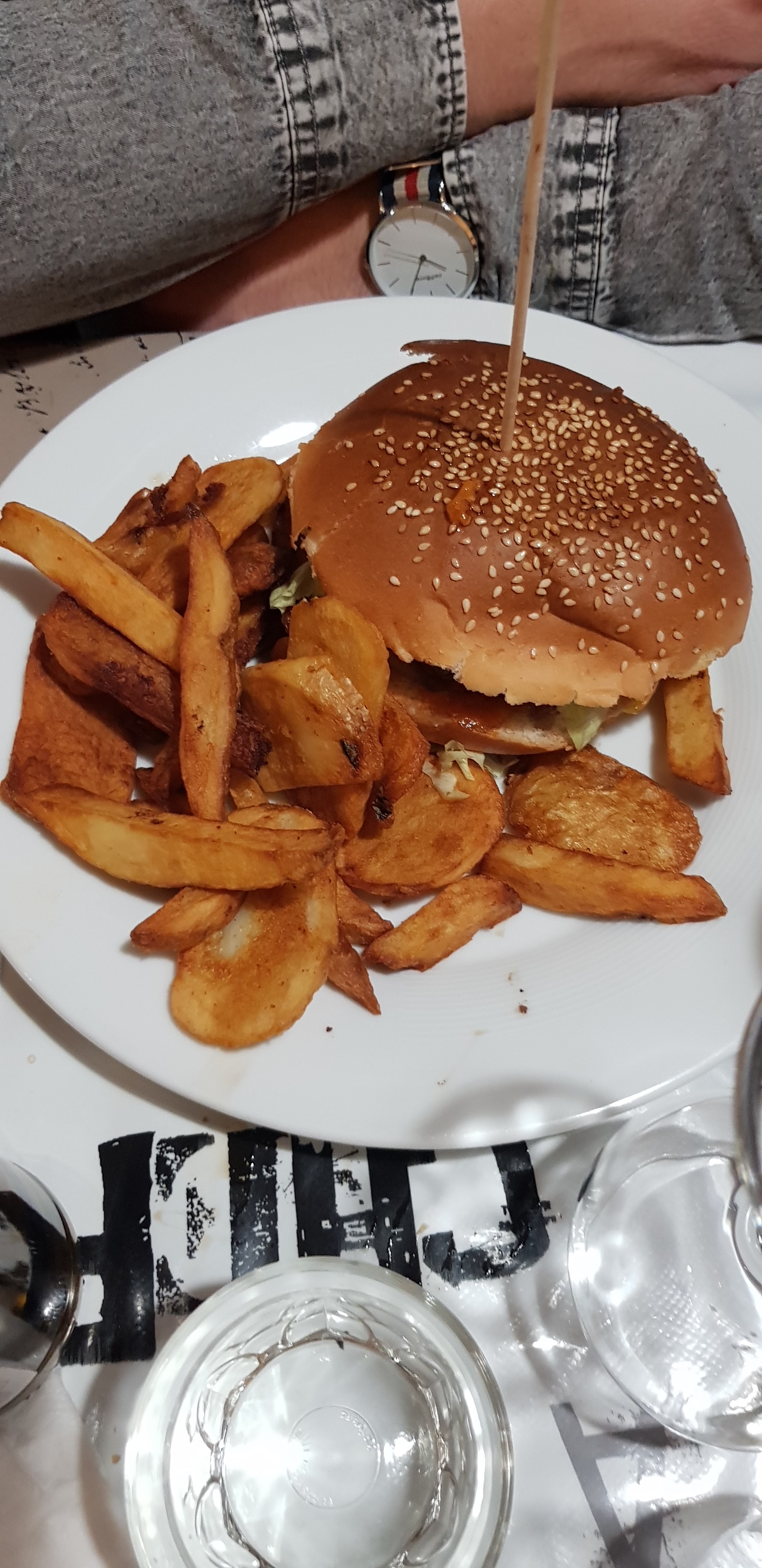 Nous avons pris burger frites et Fish and chips et le steack était tout petit dans le pain, mais surtout la panure et les frites avaient le goût de vieille huile je ne conseille vraiment pas. Par contre déco atypique et personnel très gentil.