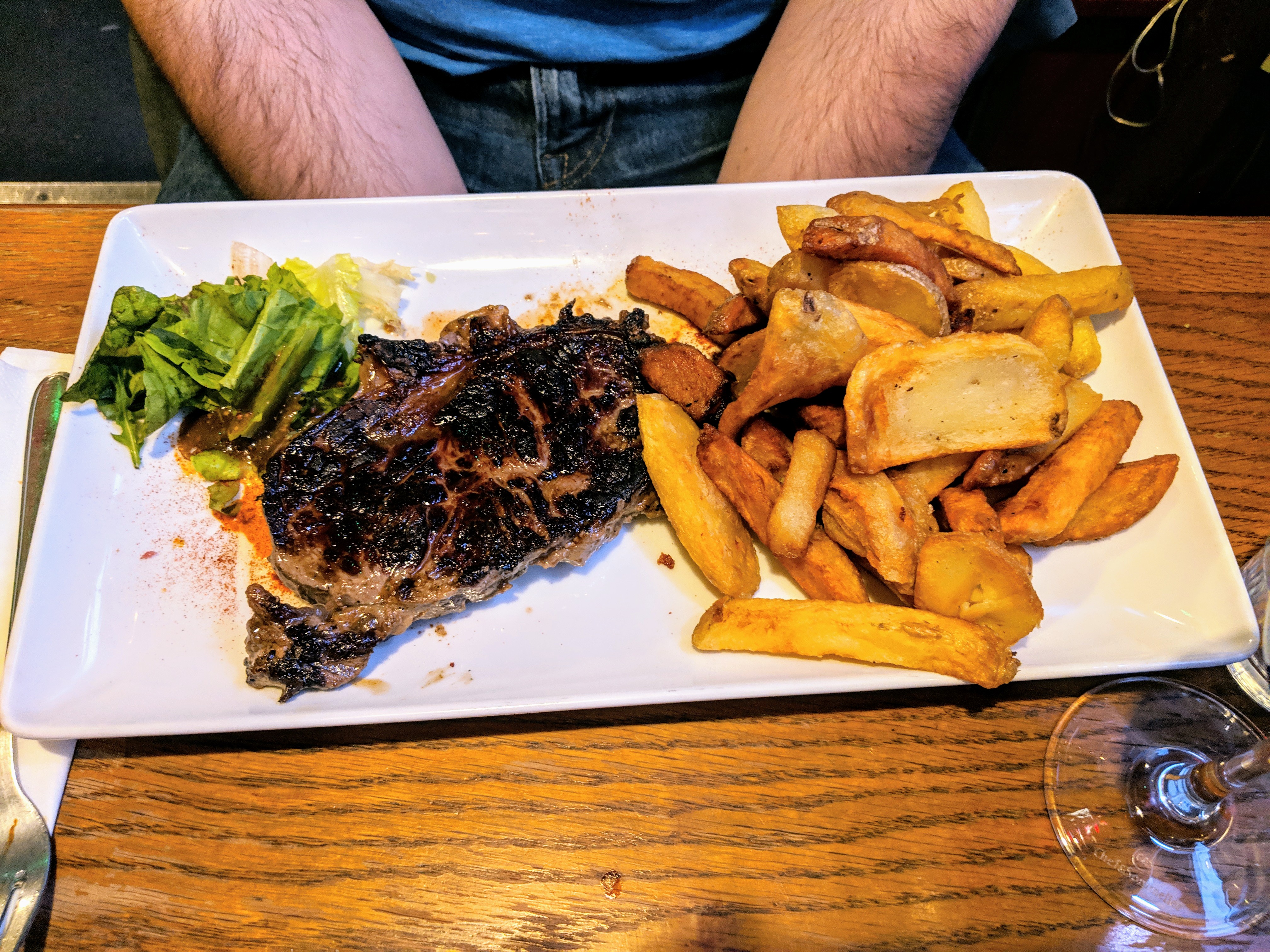 Petit restaurant trouvé par hasard, très bien noté donc je suis allée goûter. Nous avons été à l’étage, super sympa la salle (sentiment d’être dans un salon chez quelqu’un), petite carte avec quelques plats fixes et quelques plats du jour. Nous avons goûté le poisson du jour (photo), la pièce du boucher et le fish & chips + moelleux au chocolat et la tarte tatin (un délice!) = excellent rapport qualité prix, service accueillant et à la bonne franquette. À faire et refaire!