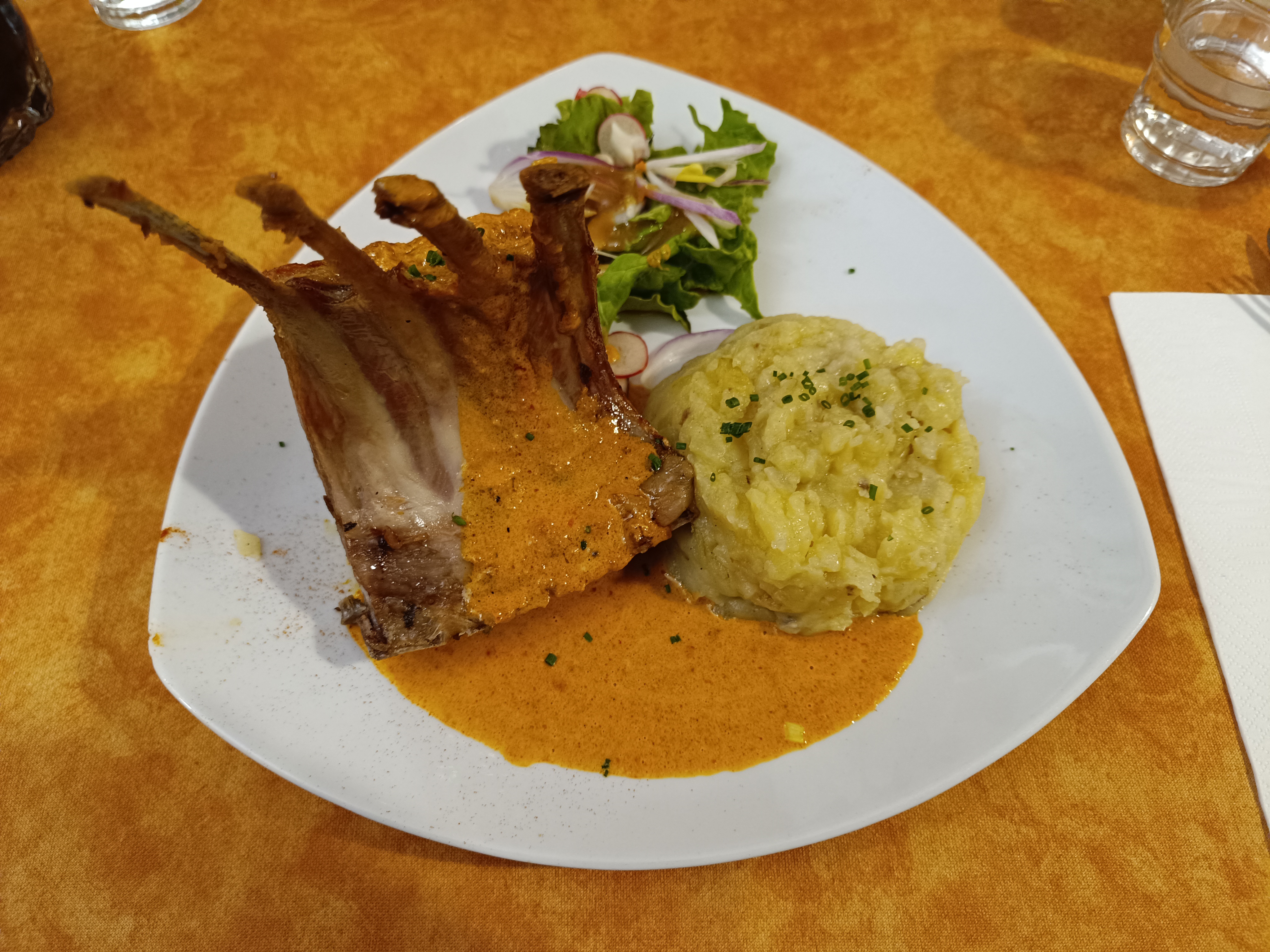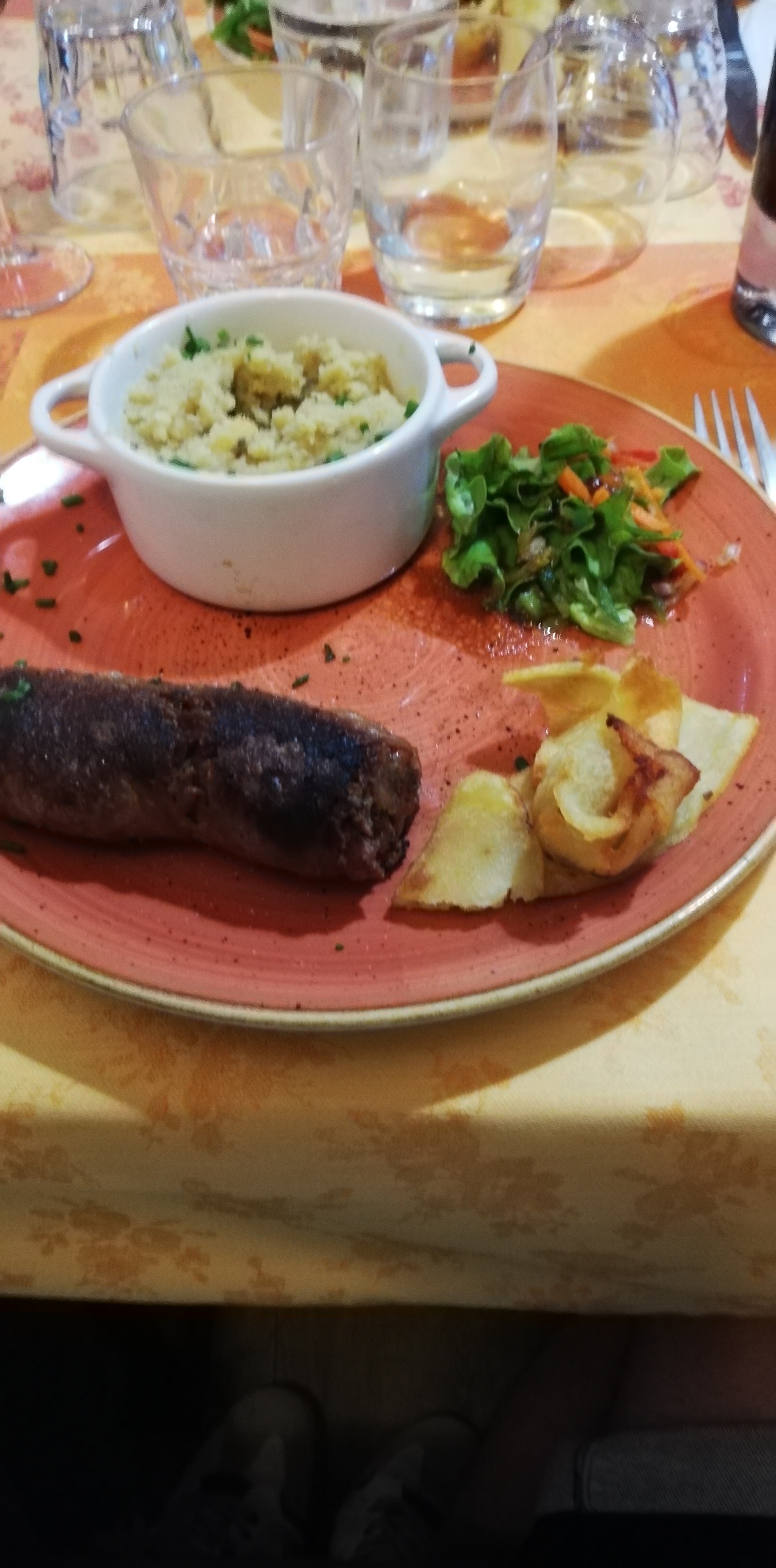 Un bon choix sur notre route pour ce petit restaurant à la déco atypique et super accueil. Menu entrée-plat ou plat-dessert pour 17.50 euros. Assiettes copieuses.