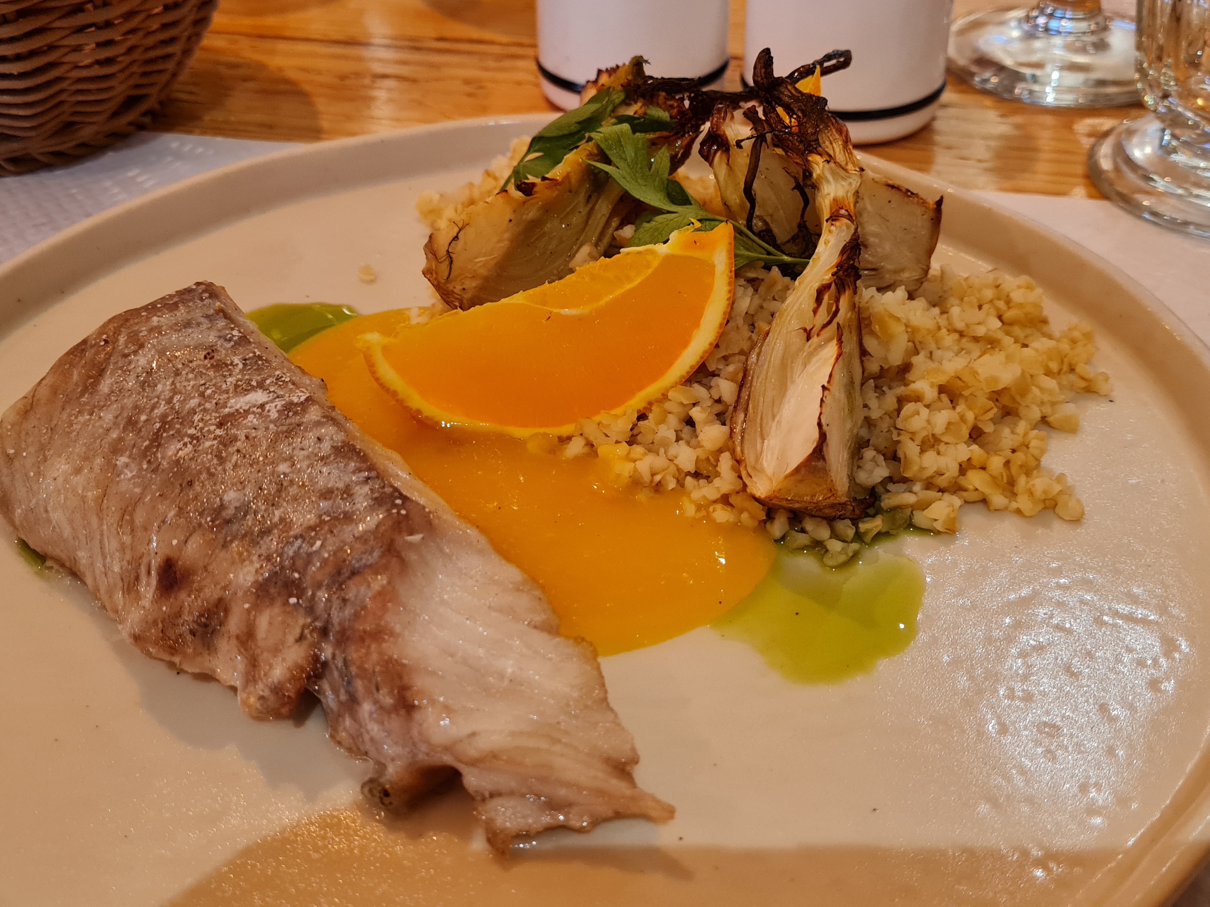 Le service était excellent et efficace malgré une forte affluence. Le restaurant est climatisé et propose également des tables dans une petite cour intérieure, qui ne donne pas sur la route. La carte est variée, les produits sont frais et les tarifs accessibles, notamment les menus qui fonctionnent le weekend. Pour environ 27€ vous aurez droit à une entrée, un plat, du fromage et un dessert, sans sacrifier la qualité. Nous avons passé un agréable moment.