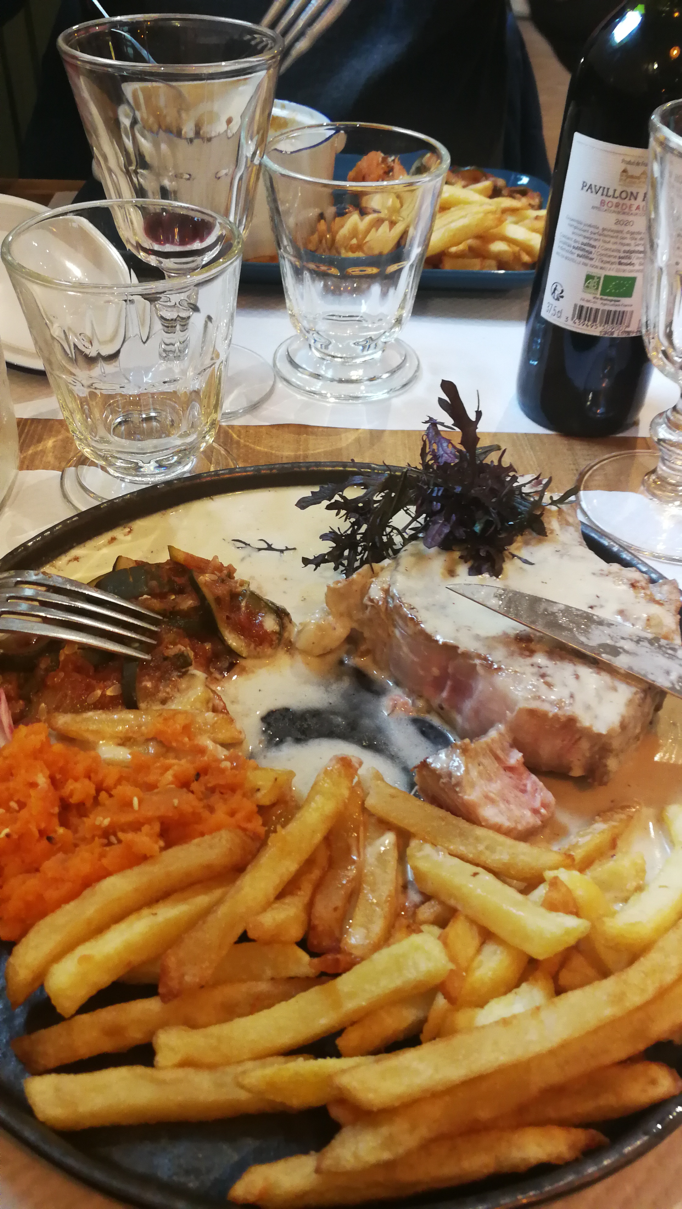 Bon rapport qualité/prix et serveuses sympathiques.😁 Le saumon fumé est très bon mais un peu trop salé.. La côte de veau flambé était bien cuite 👍 quel dommage que les frites ne soit pas faites maison 😢. Nous reviendrons 🤗