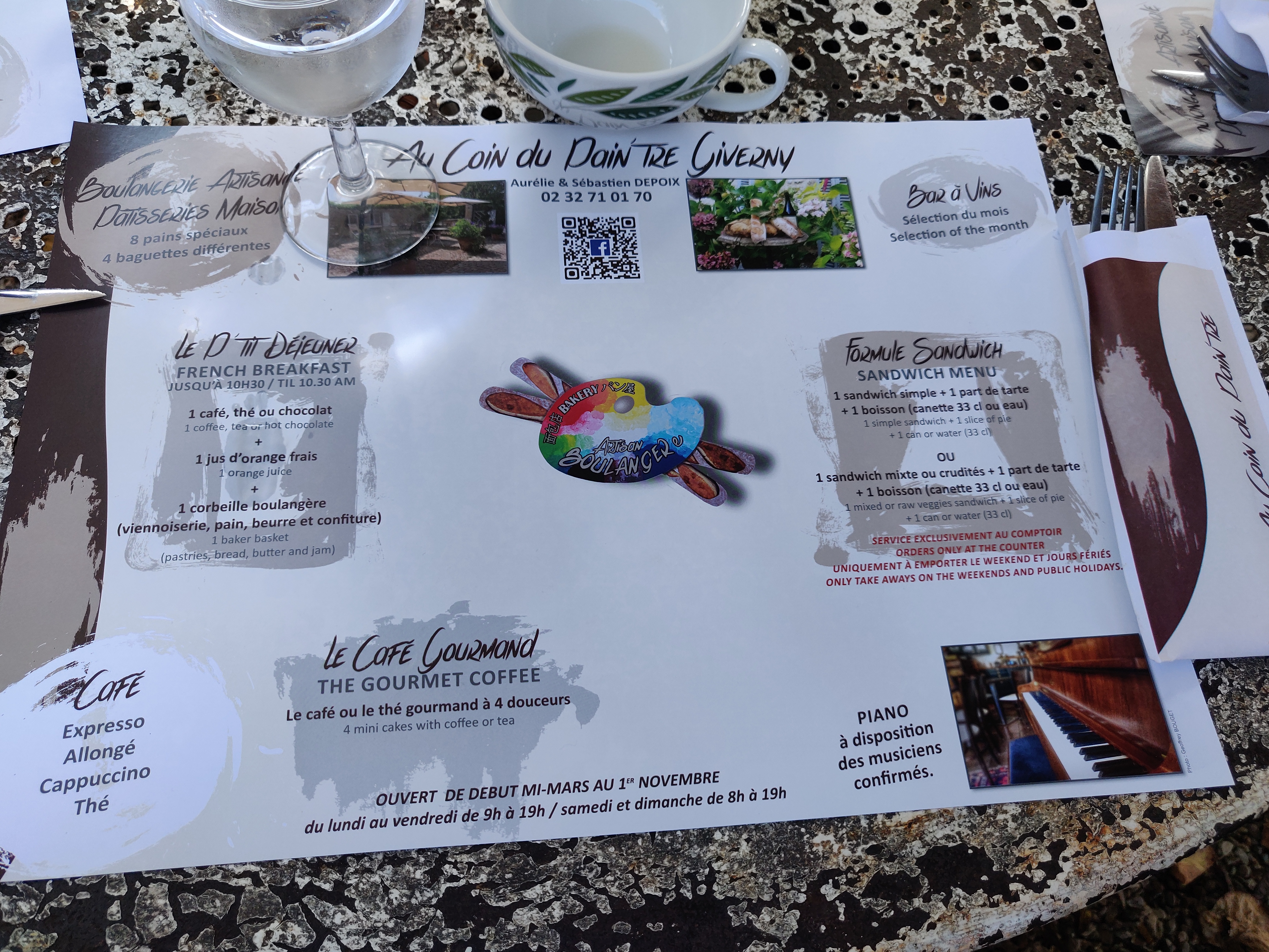 Situé un peu plus loin du musée Monet, restaurant atypique dans un ancien atelier, c'est une boulangerie qui fait resto. Repas et pâtisseries très bons. Et les 2 jeunes serveurs pleins d'entrain.