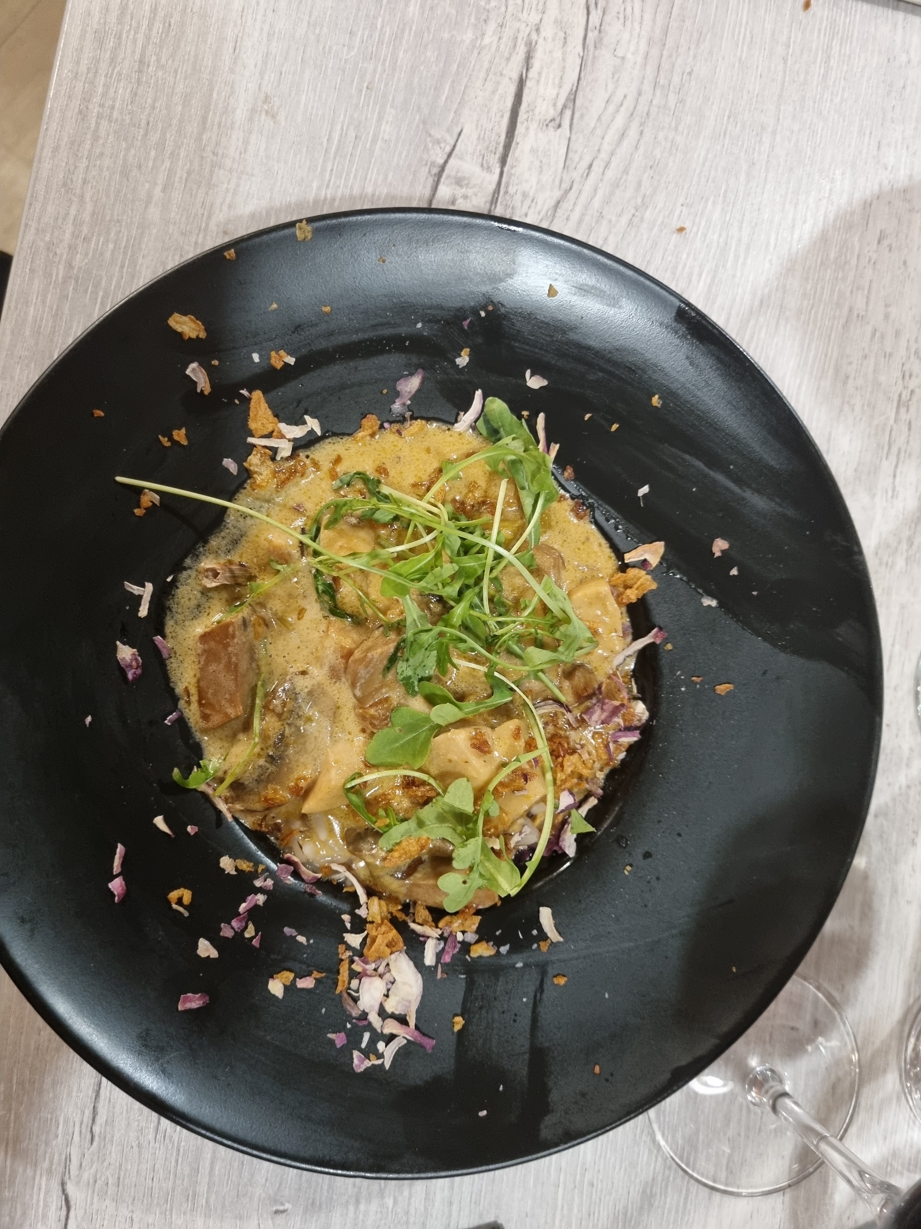 Ici tout est fait avec soin : un restaurant décoré avec énormément de goût, une très belle vaisselle artisanale, une très bonne musique d'ambiance, un accueil et un service chaleureux, très soigné et qui s'adapte pour vous offrir la meilleure expérience possible et enfin une succulente cuisine avec possibilité de plat végétarien! Un pur moment de bonheur!