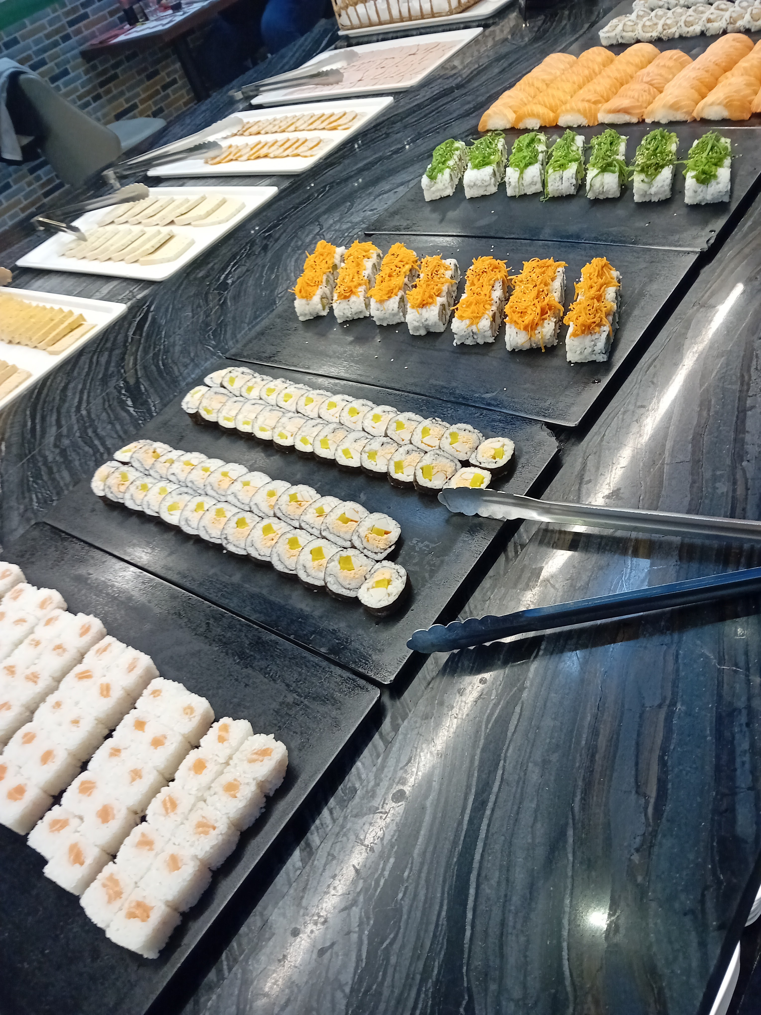 Dans ce restaurant, vous trouverez de nombreux choix, des entrées, sushi, nems, Plats de viande,plat de légumes,choix et produits de qualité pour le grill, différentes viandes rouges,est poissons 🐟🎏, côté desserts 😋, glaces est fruits à disposition, endroit agréables et bonne ambiance sympathique, à vous de découvrir cette endroit,bon appétit à vous.