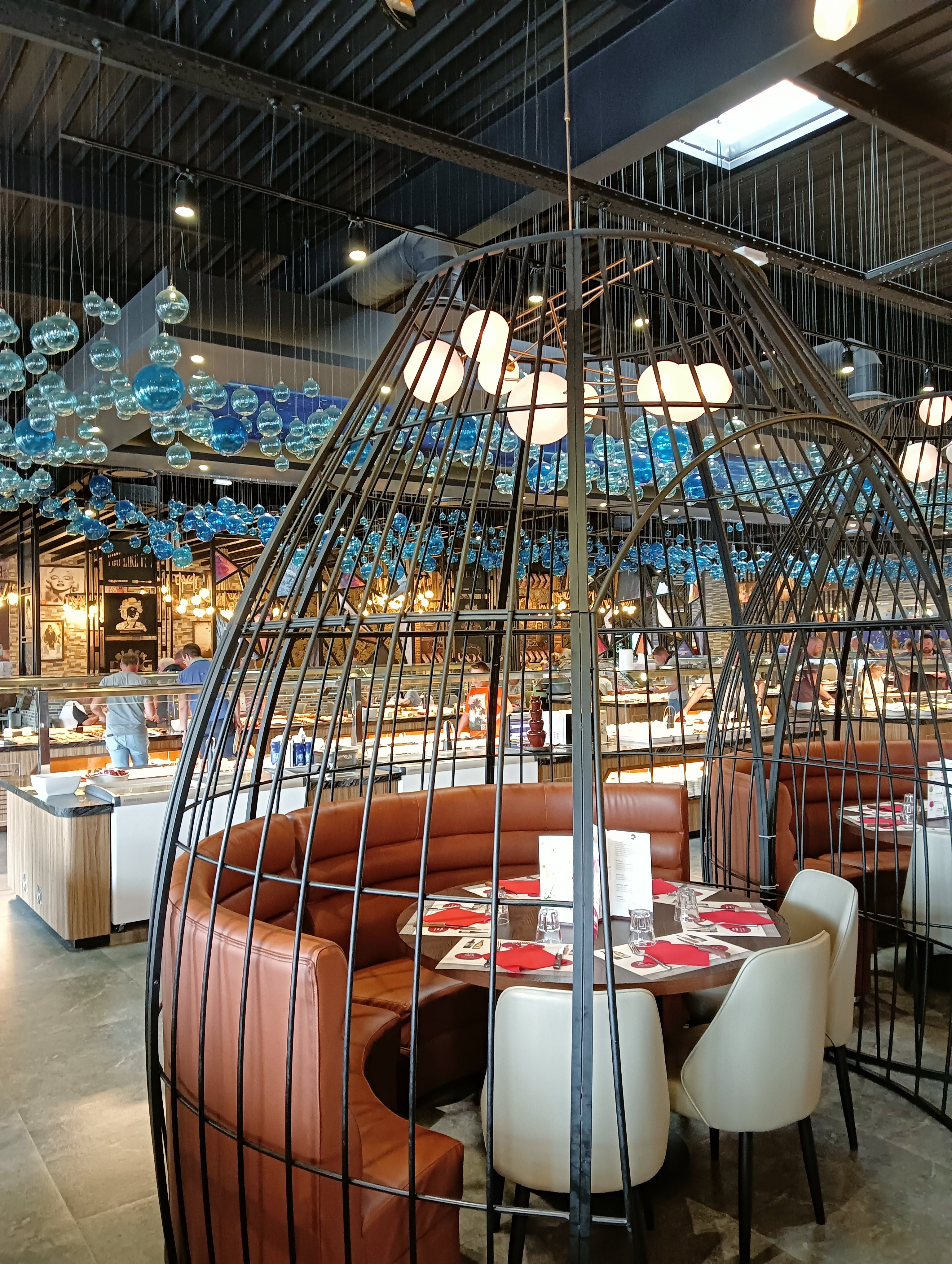 Très décevant, nous avons voulu essayer, tant pis pour nous. Cocktails dilués et insipides, nourriture souvent desséchée, sauf pour le grill, bruyant très bruyant, on se croirait dans une cantine scolaire, peu de personnes utilisent les pinces pour prendre la nourriture, quant aux bouteilles de sauces elles sont gluantes à souhait. Une serveuse vient à l'instant de débarrasser nos assiettes plat et entrée en prenant soin de poser les restes de la table précédente à côté de mon dessert..... La quantité est sur les présentoirs, pas la qualité.