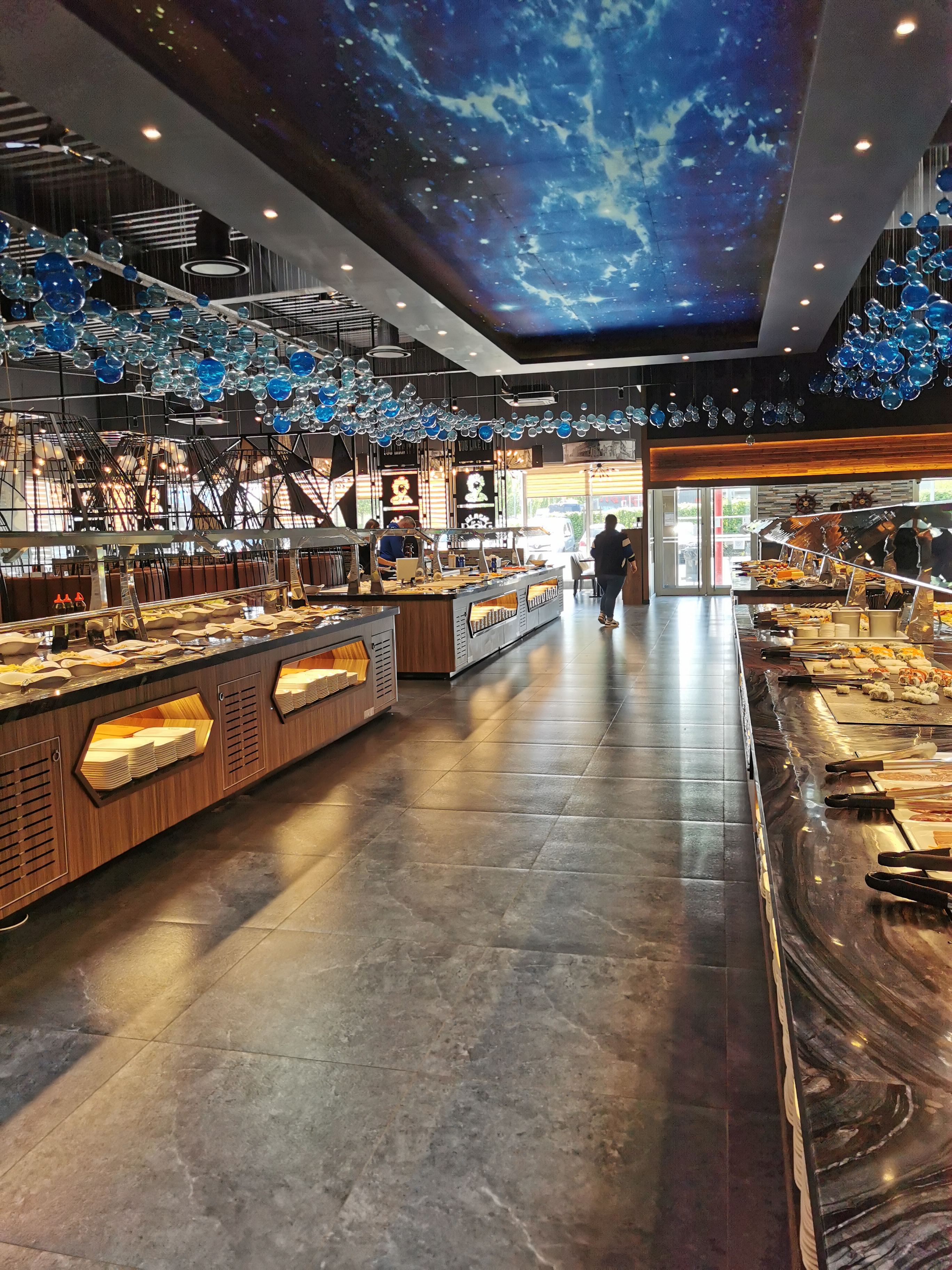 Restaurant très haut de gamme ! Spacieux, lumineux et magnifiquement jolie ! Un buffet gigantesque avec un large choix entrées / plats / desserts. Entrées corect. Plat très bien, particulièrement le grill qui est merveilleux ! Petite déception des desserts, beaucoup de produits décongeler.. Mais ça fait l'affaire Le personnel est très aimable. Très bonne expérience. Je recommande à 1000%