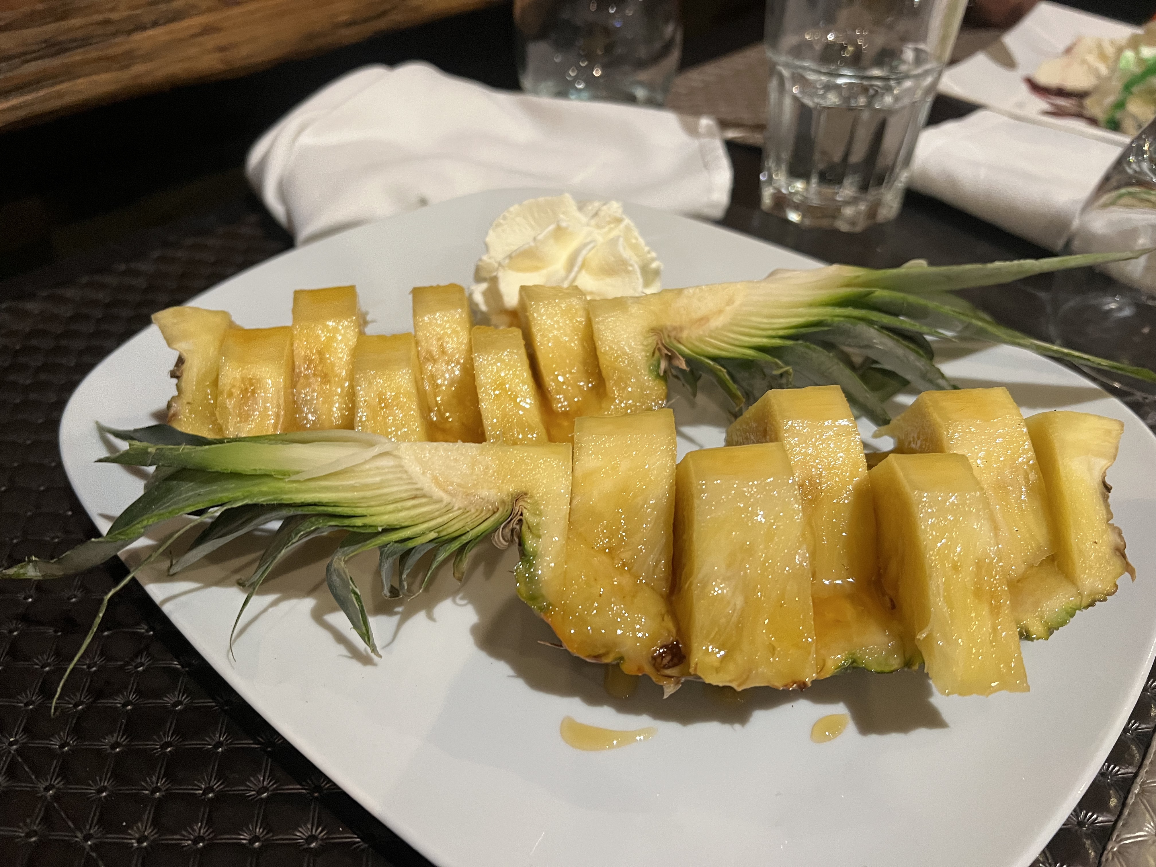 Super cadre, agréable et sympa... rien à redire sur la qualité des plats proposés... C'est bon et copieux... Mais en ce qui me concerne je trouve tout beaucoup trop cher, surtout les vins, et nous avons désespéré avoir un jour notre glace au dessert !