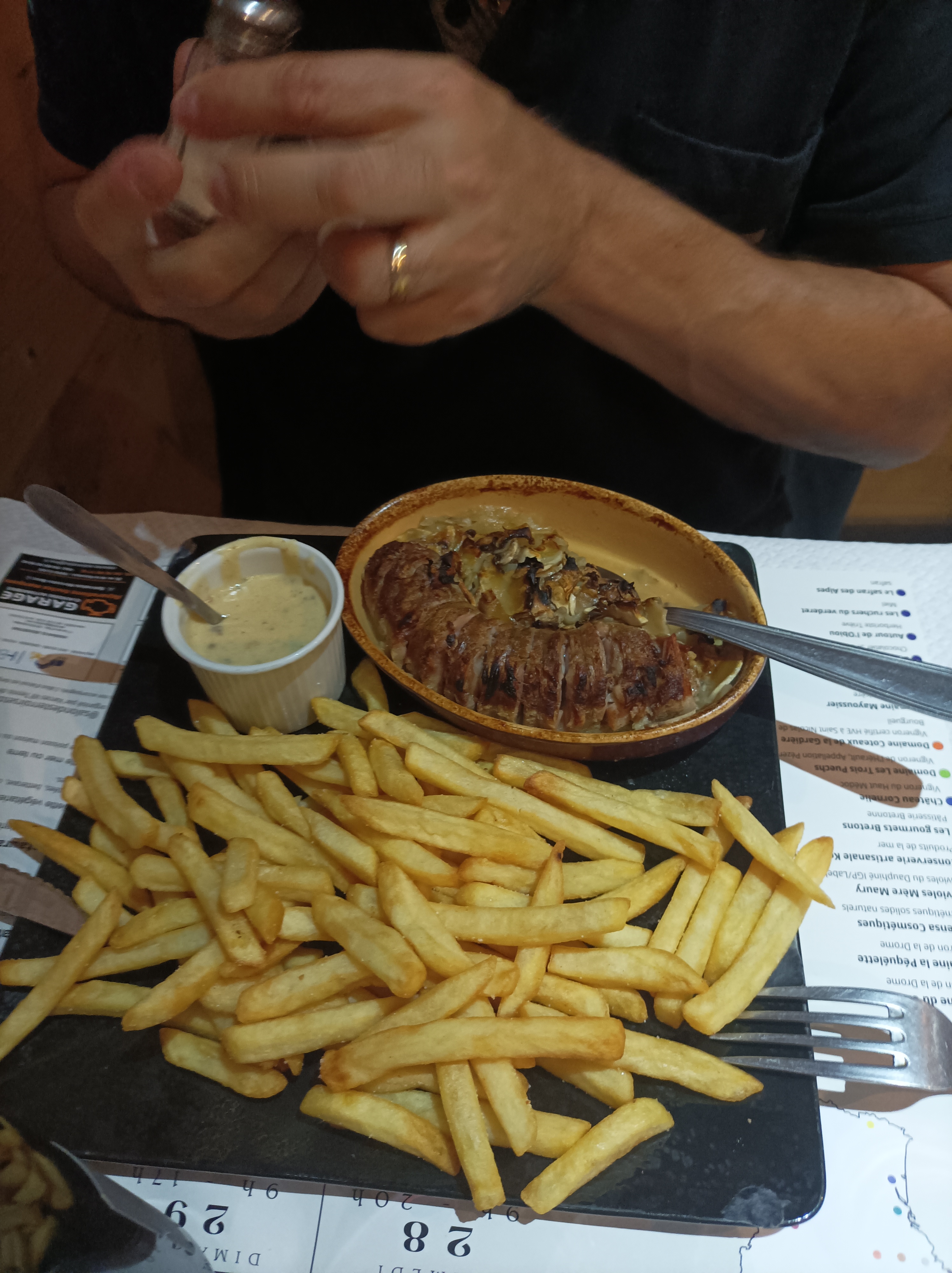 un restaurant au top, conseillé par des amis et nous sommes vraiment content d'y avoir été manger à deux et nous avons ramené nos enfants et la petite chérie qui n'est pas de notre département on était conquis mais même les jeunes l'ont trouvé top. Il y a de tout pizza excellente au saumon, hamburger de fou une tuerie mon fils a dit, et mon mari et ma petite belle fille ont pris les cuisses de grenouilles très très bonnes aussi et moi tartiflette excellente, crémeuse à souhait, l’andouillette aussi super bonne, par contre attention ce n'est pas noté sur la carte mais elle est aux champignons, alors si c'est comme moi intolérante attention !!! mais sinon vous pouvez demander sans je pense. Et pour finir les desserts aussi sont excellent... bref allez y les yeux fermés c'est tout simplement excellentissime !!!! Le personnel est super sympathique et le pizzaiolo est au top 👍👌. Et je recommande ce vin rouge, il est super bon.