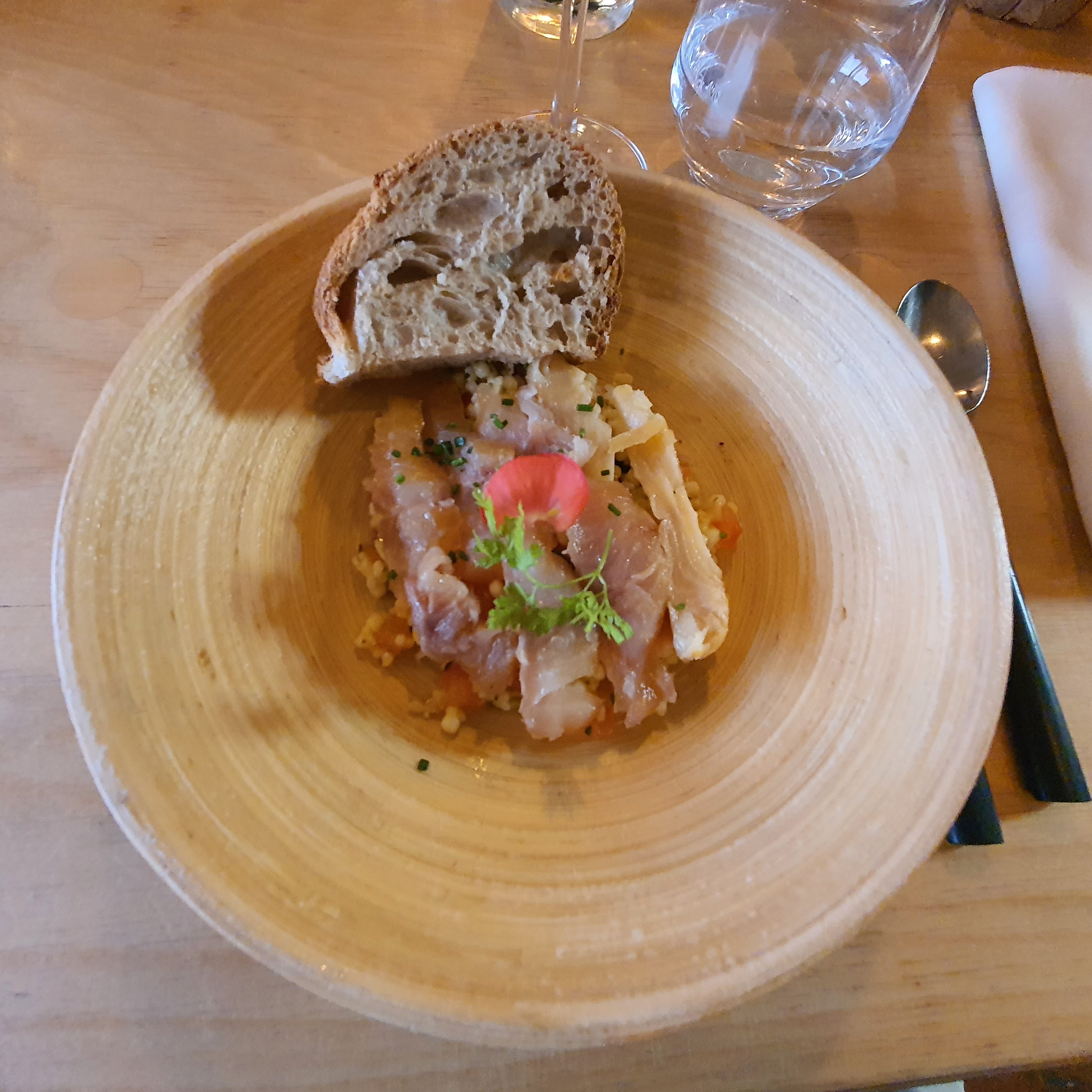 Super restaurant du plats de l'entrée au dessert très fins et délicats savoureux et pas gras cuisine de qualité bravo la cheffe et le service sympa et les vins même au verre de qualité nous reviendrons et recommandons sincèrement bravo et merci encore