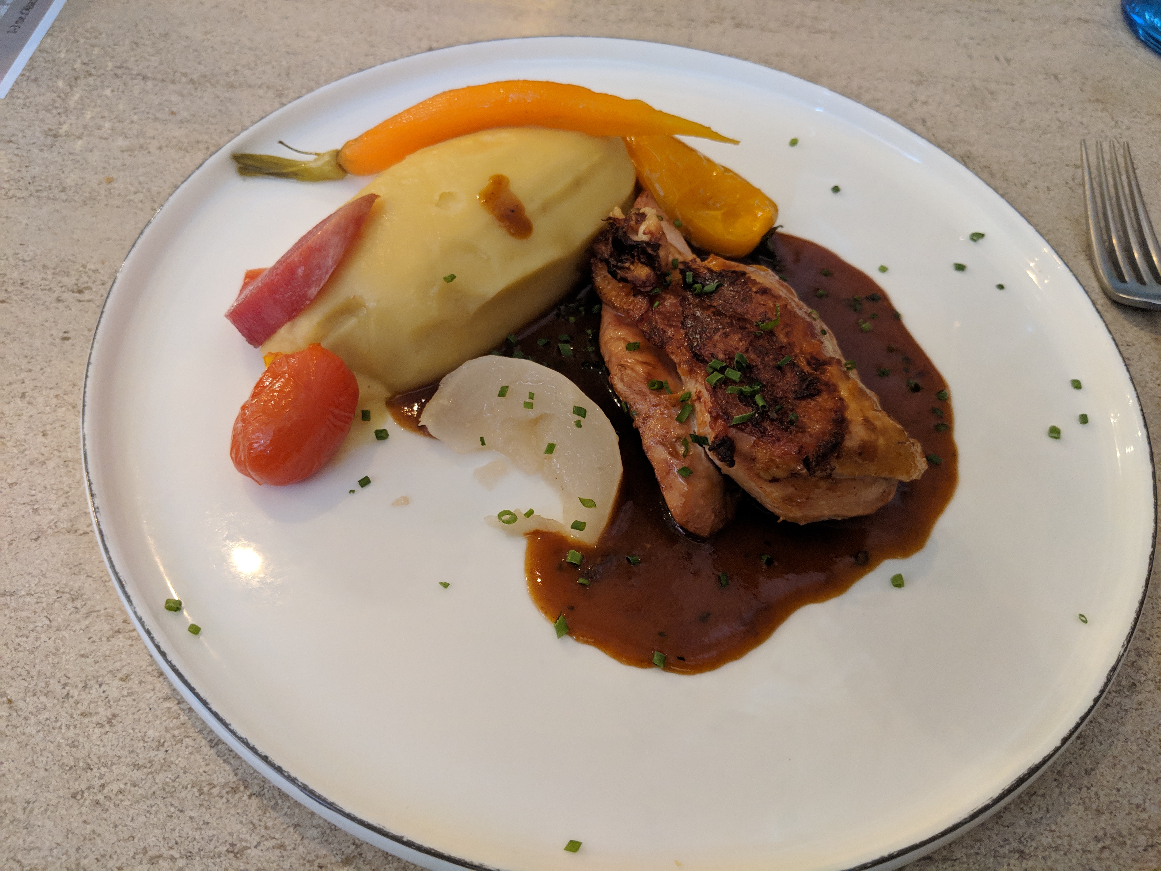 Accueil agréable, choix de plats, portions copieuses, j'ai trouvé un peu trop de plats à base de sauce mousseuse sur un seul repas... Entrée, plat et dessert... J'y retournerai pour tester d'autres compositions....