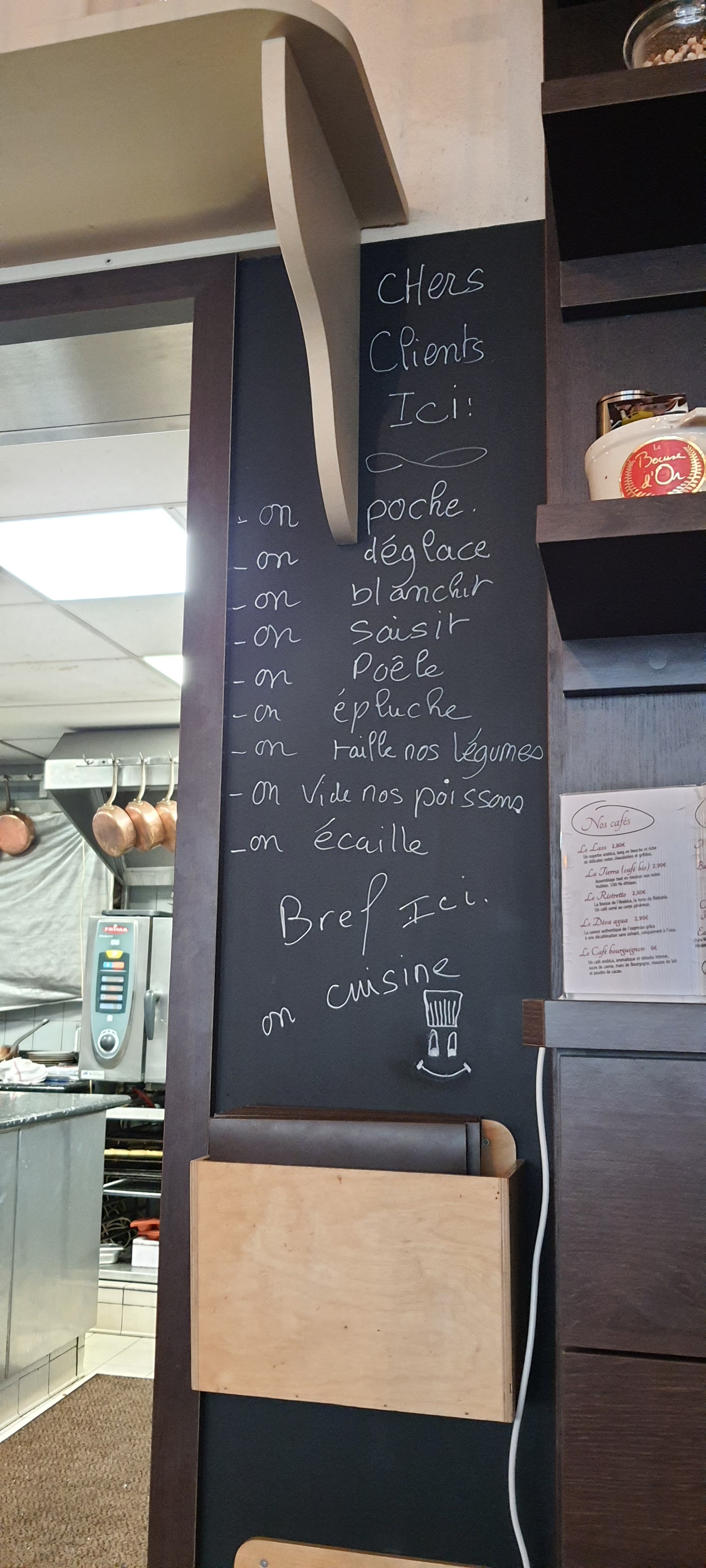 Rien à redire.Cuisine excellente. Nous avons prit entrée,plat et dessert de la cheffe .. rapport qualité prix au top. Acceuil chaleur. A recommander +++ De la part de Mme Joëlle
