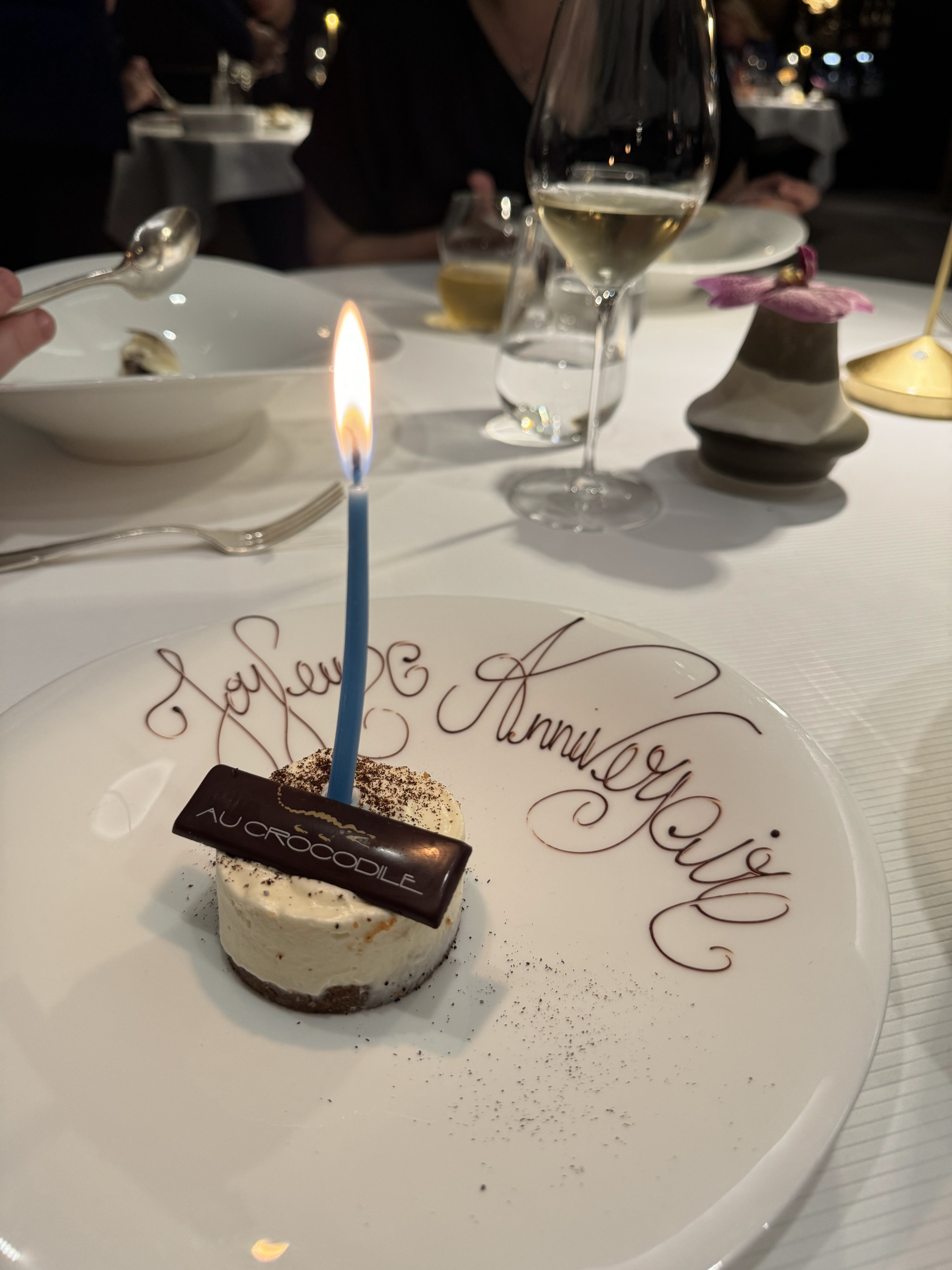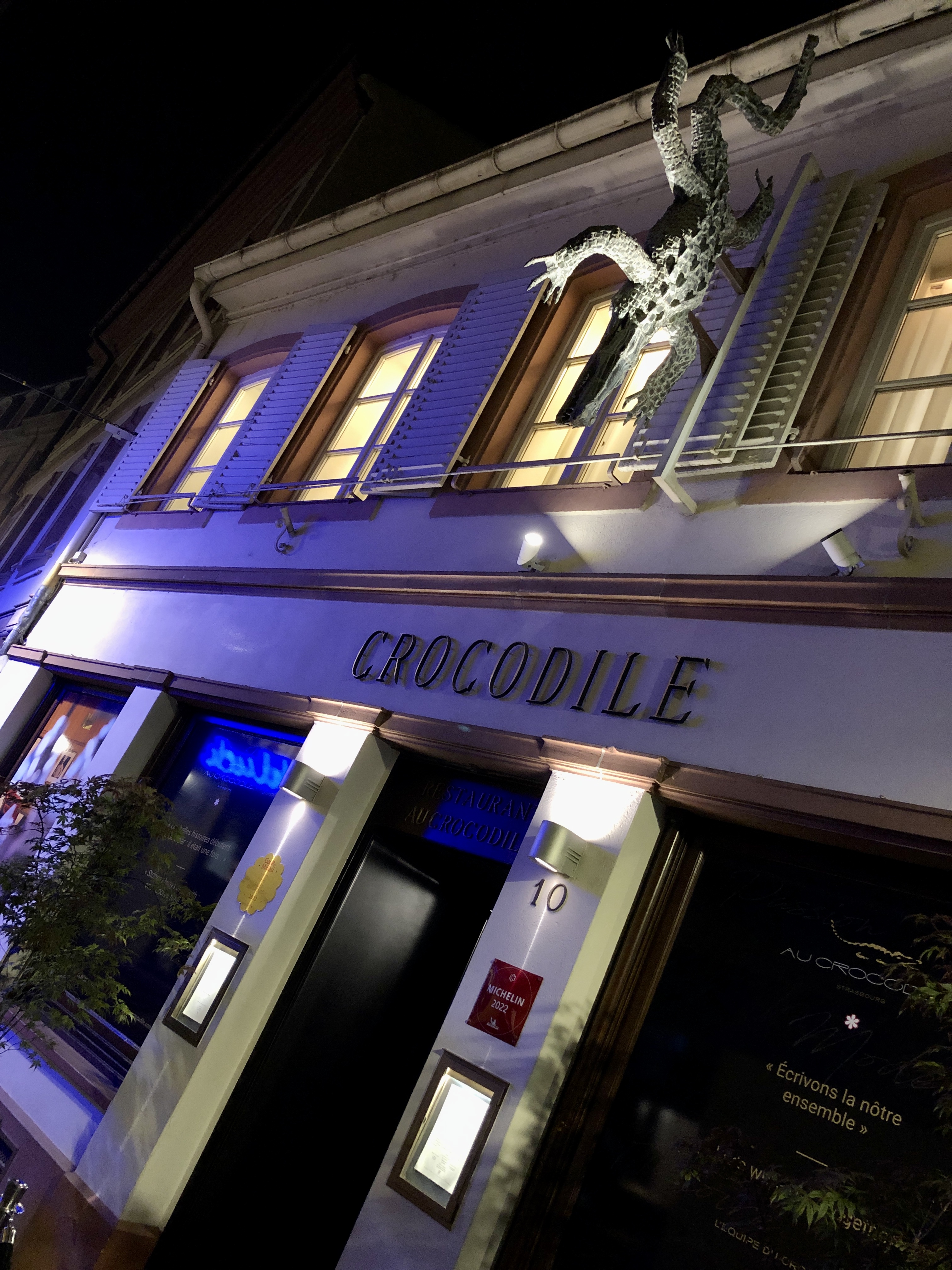 De passage à Strasbourg pour un week-end prolongé à la cour du corbeau, nous nous sommes adressés à l'accueil de l'hôtel afin de connaître les meilleures tables de cette ville. Il nous a été vivement conseillé de choisir un etoilé au crocodile. Apparemment ce restaurant est célèbre malgré ce nom quelque peu inattendu. Réservation faite (par l'hôtel), nous nous sommes présentés dans ce restaurant pour dîner. C'était une surprise pour l'anniversaire de ma femme. La surprise a été de taille et bien entendu très appréciée. Afin de célébrer cet anniversaire l'établissement a eu la délicatesse de nous offrir le champagne. Très beau geste. Ensuite se sont enchaînés les divers services et ils ont été très nombreux, le tout entrecoupé d'amuse bouches entre chaque service. Une véritable symphonie de saveurs et de douceurs. Le tout ponctué par une sélection de vins remarquables. Un accord plus que parfait. Pour le dessert une autre surprise, j'avais discrètement demandé au chef de rang de présenter sous cloche le cadeau d'anniversaire de ma femme. Ce qui a été fait dans les règles de l'art. Et à ma grande surprise un gâteau d'anniversaire nous a été apporté à notre table une fois le cadeau offert. Très belle deuxième et très agréable surprise. De notre arrivée jusqu'à notre départ (Nous avons passé plus de trois heures à table) tout a été parfait et magnifiquement orchestré par l'équipe du restaurant. Un souvenir mémorable et exceptionnel. Un grand merci à toute l'équipe du restaurant pour ce délicieux et magique moment.