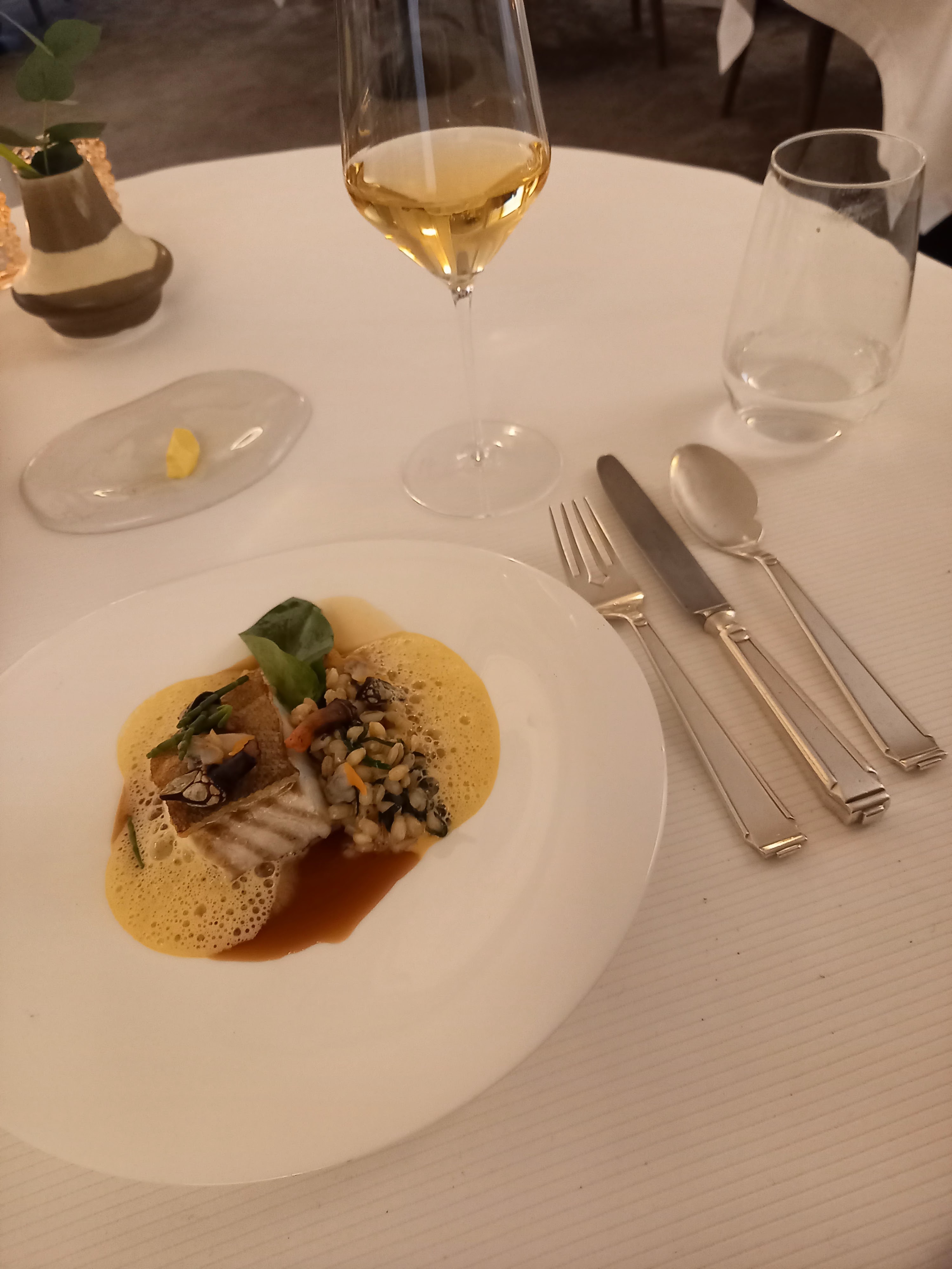 La cuisine est plus que délicieuse, le service était irréprochable mention spéciale au sommelier Enzo, qui nous transmet sa passion pour le vin le restaurant mériterait vraiment une deuxième étoile
