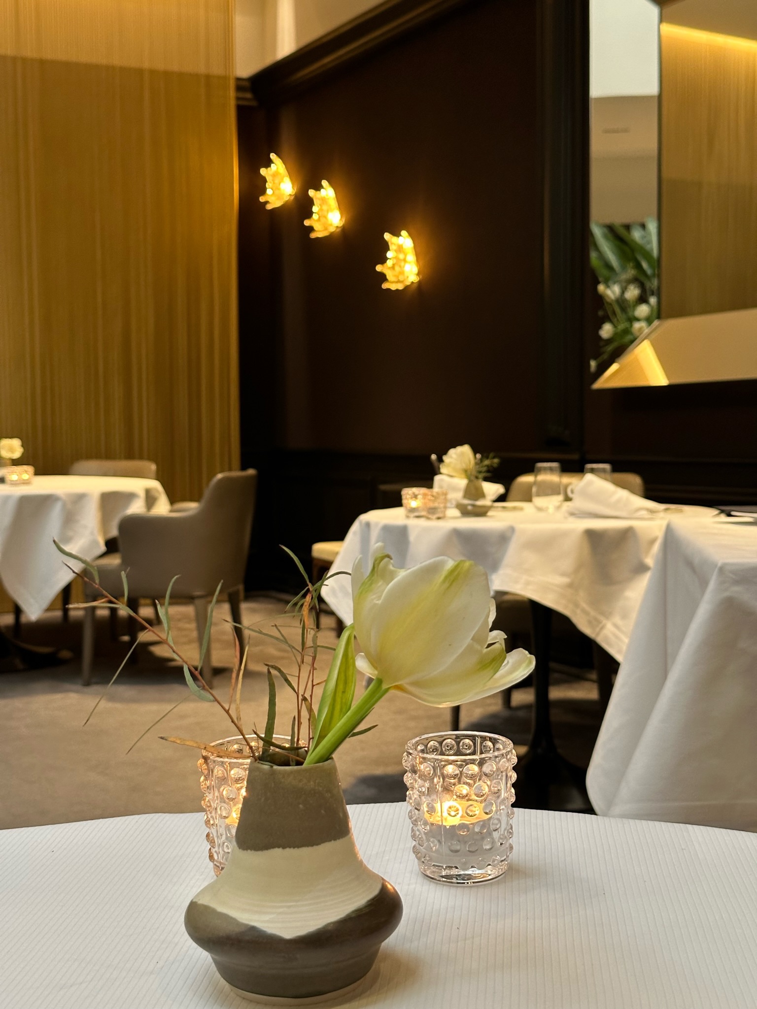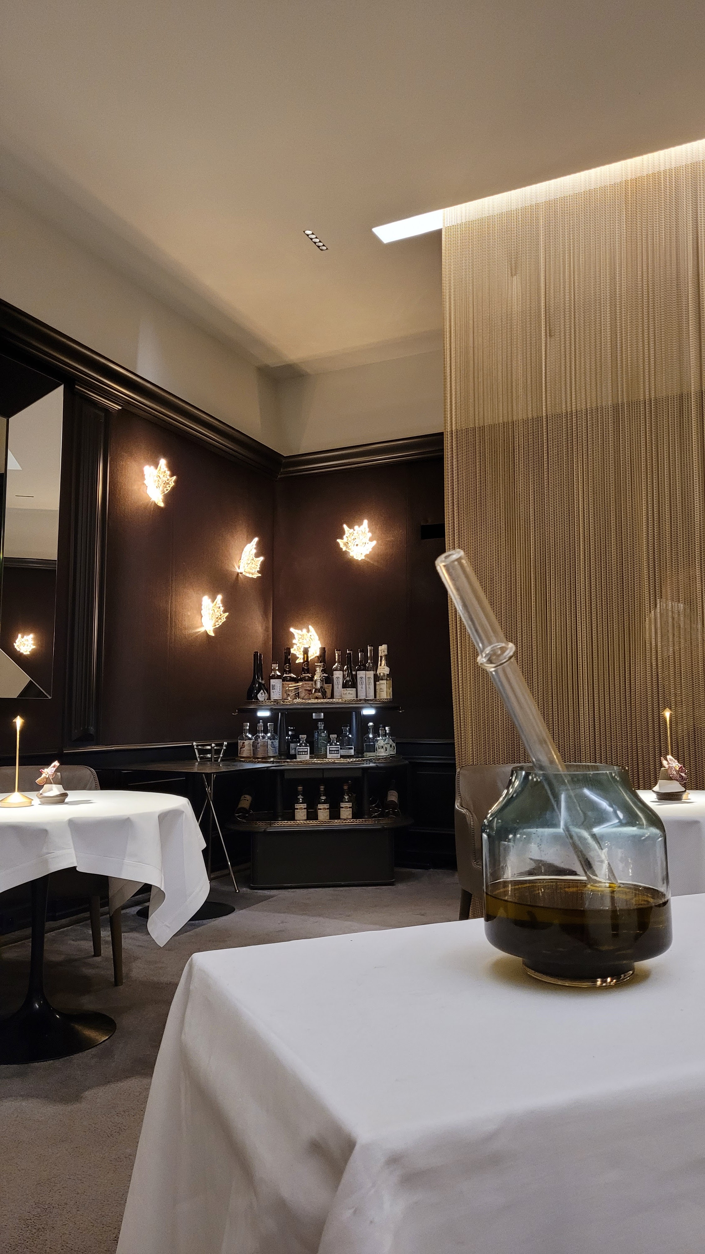 Superbe restaurant avec un extérieur sobre qui cache un intérieur somptueux avec ses lumières, ses miroirs et oeuvres d'art. Le tout dans une ambiance chaleureuse. Le service est impeccable et le personnel aux petits soins. Le menu est excellent avec des surprises tout au long du repas.