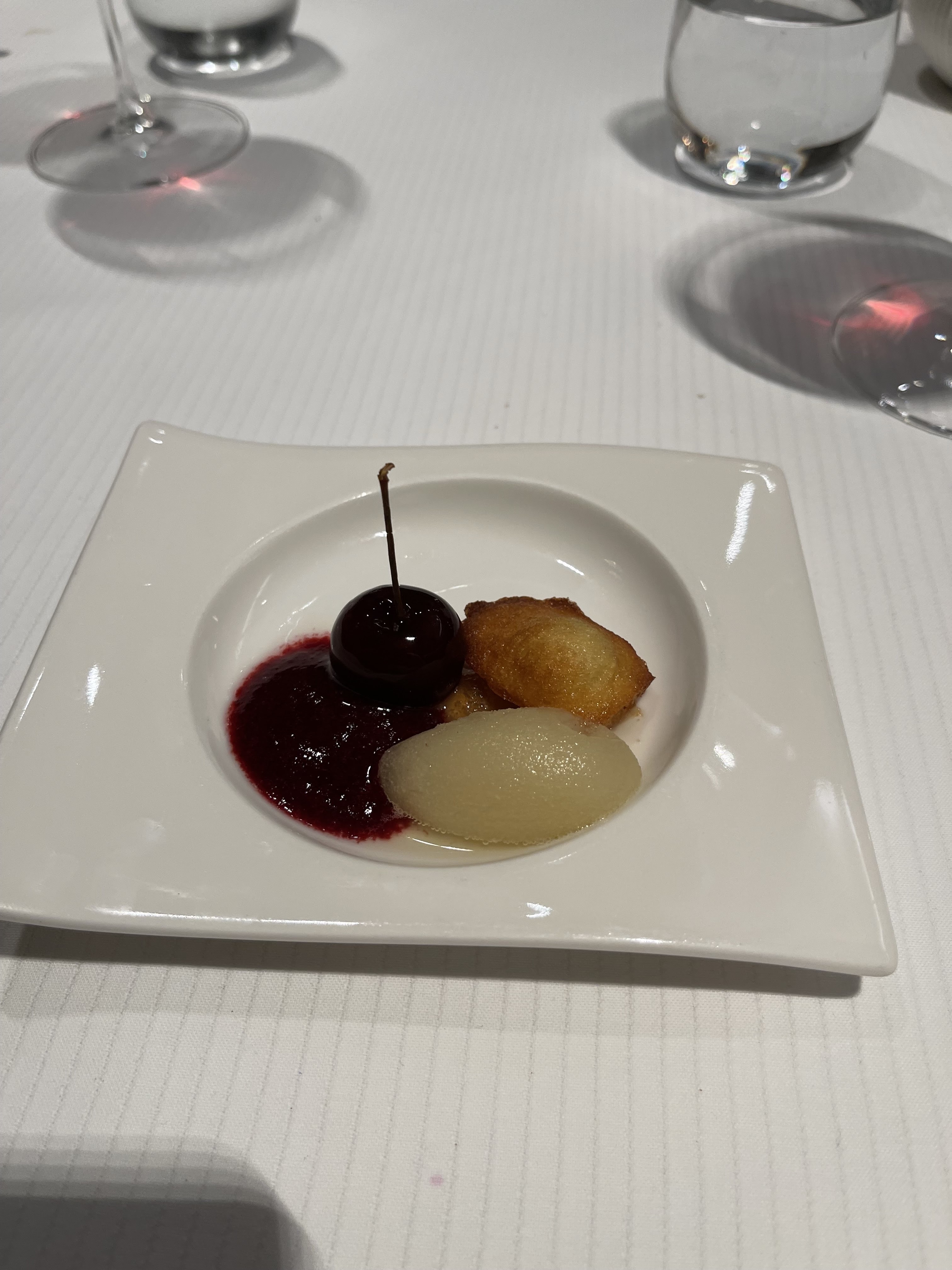 Un moment exquis… nous avons voyagé de surprise en surprise.. entre explosion de saveurs à chaque plat et ravissement des papilles à chaque vin… une symphonie ! Pour finir avec le spectacle de la cathédrale. Un seul mot : Bravo ! Le service était à la hauteur du moment : irréprochable. Nous y reviendrons assurément!