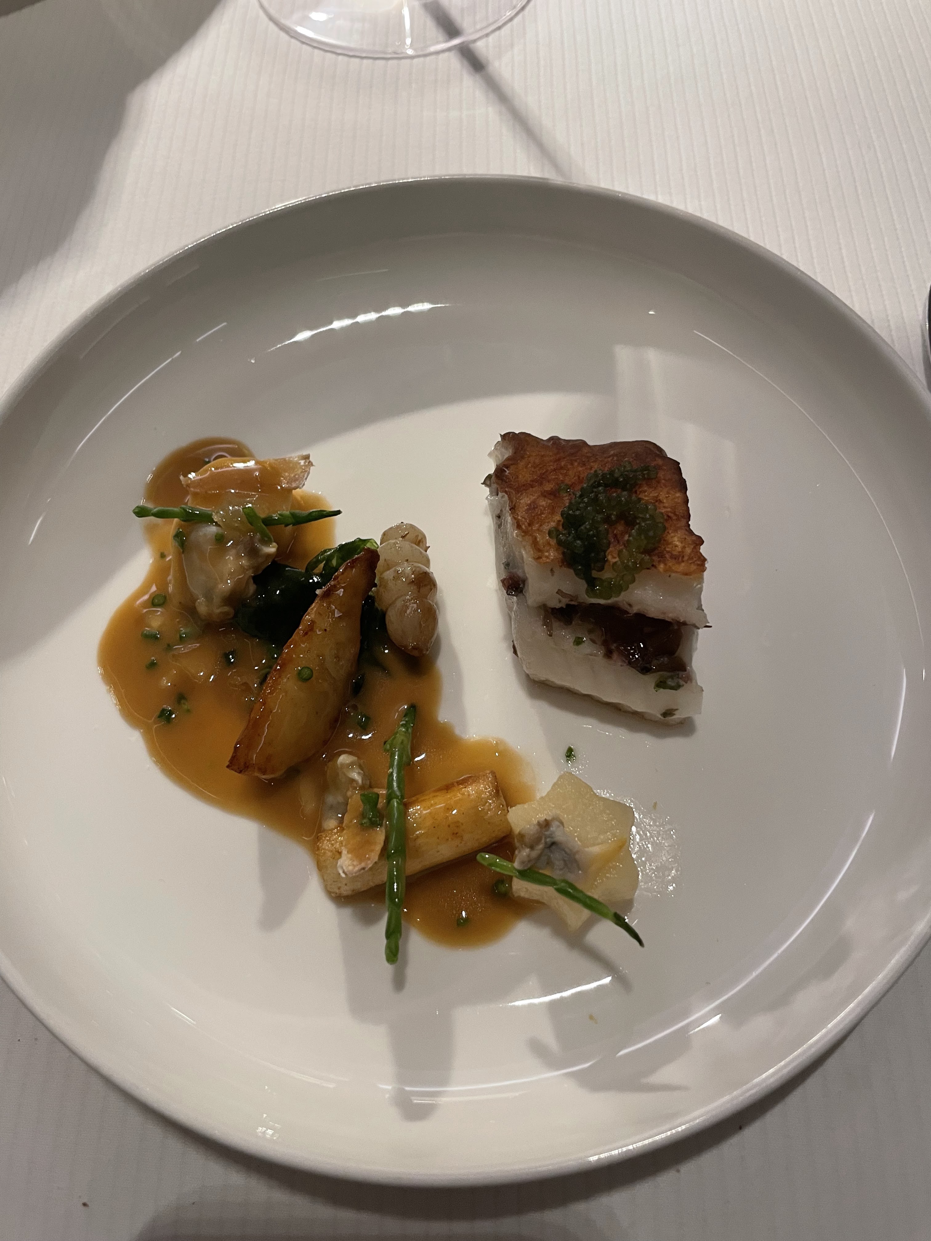 Tout était parfait du service à l'assiette en passant par le cadre magnifique sublimé par un tableau gigantesque . L'expérience vaut son prix et vous ne serez pas déçu, l'équipe de salle est au top et sont de très bons conseils. Pour un repas de midi, dans le restaurant gastronomique le plus réputé de la ville, on s'en sort à moins de 100€ par personne avec entrée, plat, dessert, amuses bouches, fromage, vins, etc. PS: pensez à réserver avant, le restaurant est souvent complet même en semaine le midi.