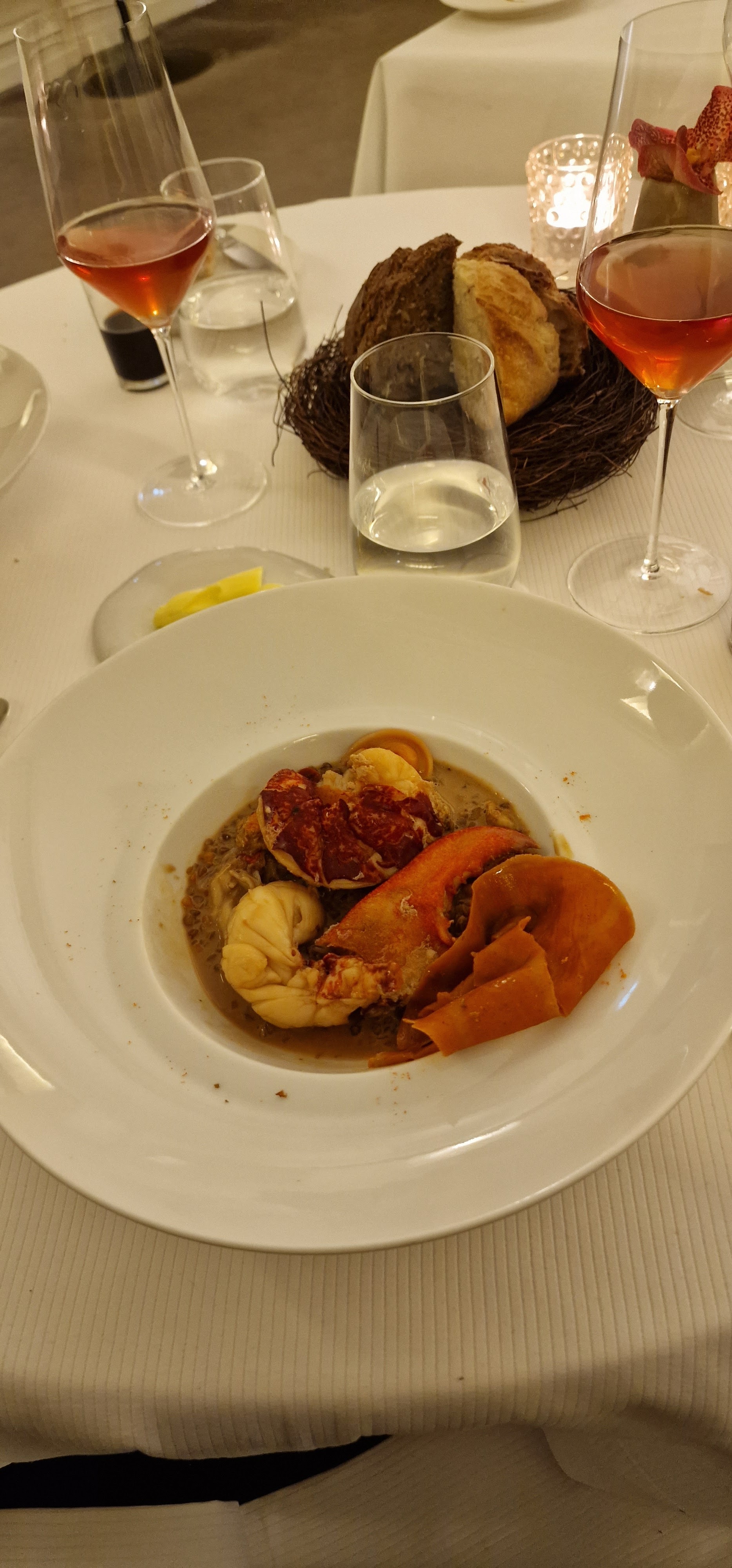 De passage a qtrasbourg , nous avons decouvert cette parenthèse enchantee avec une cuisine délicate soignée, subtile . nous avons pris le homard et le dessert à la vanille, les deux plats phare' de la carte. après la fin de cuisson devant nous des homards et de la raviole, avec son bouillon corsé, nous avons savoure et eu une explosion de saveurs. Le meilleur homard jamais mangé. 🙏 Le dessert on en parle ? de cette délicatesse en bouche je n ai pas les mots.... merci à Hugo pour la sélection de champagnes et vins pour accompagner ces mets, ( decouverte du vin orange d'alsace),merci aux personnes qui ont assuré un service discret, professionnel et très agréable avec nous.( nous avons oublié les prénoms). nous avons passé un moment très très agréable dans un décor cosy feutré . nous ne sommes pas des critiques gastronomiques mais nous découvrons beaucoup de restaurants et celui-ci aura largement fait la différence . à bon entendeur