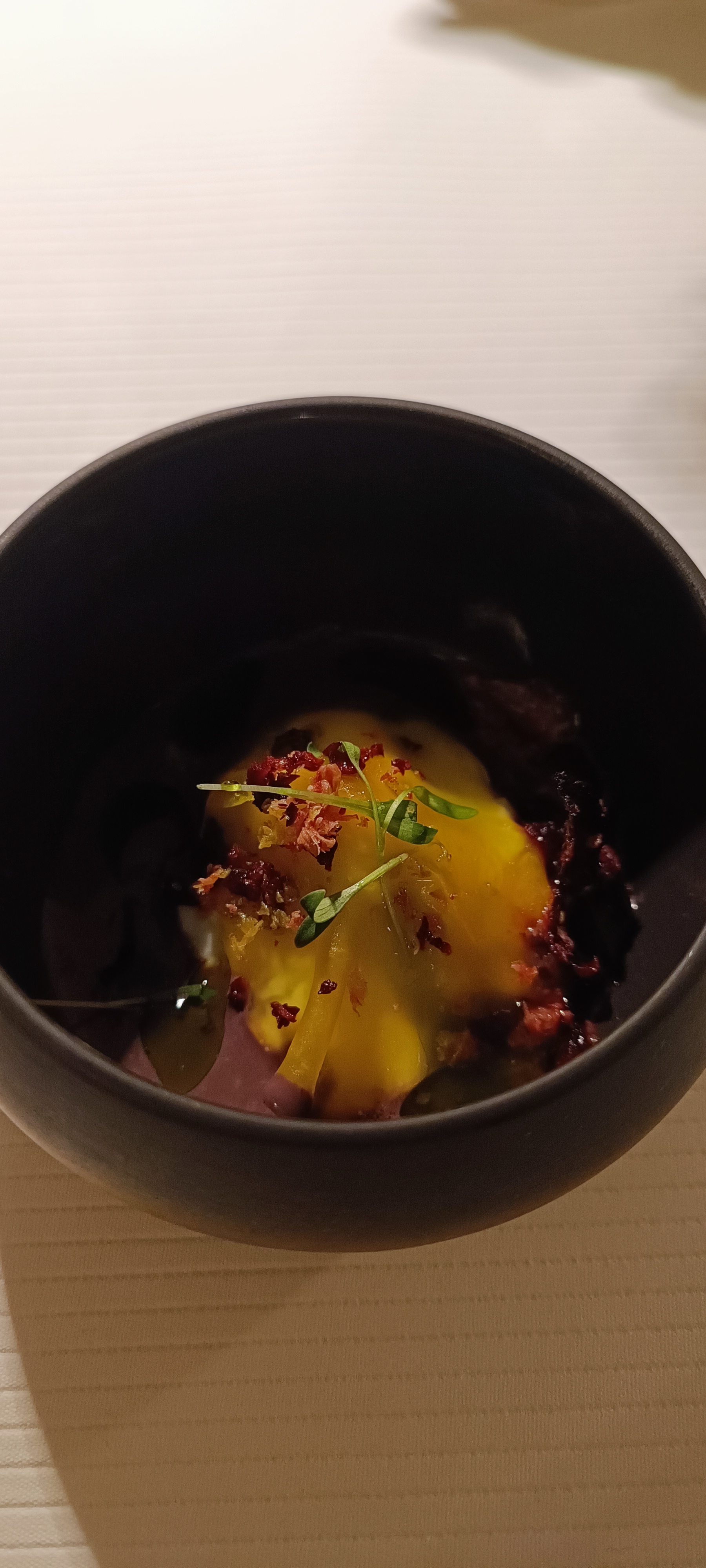 une découverte visuelle et culinaire . tout était parfait . merci au personnel pour leur gentillesse. merci au chef et à son équipe pour vos plats succulents. je recommande