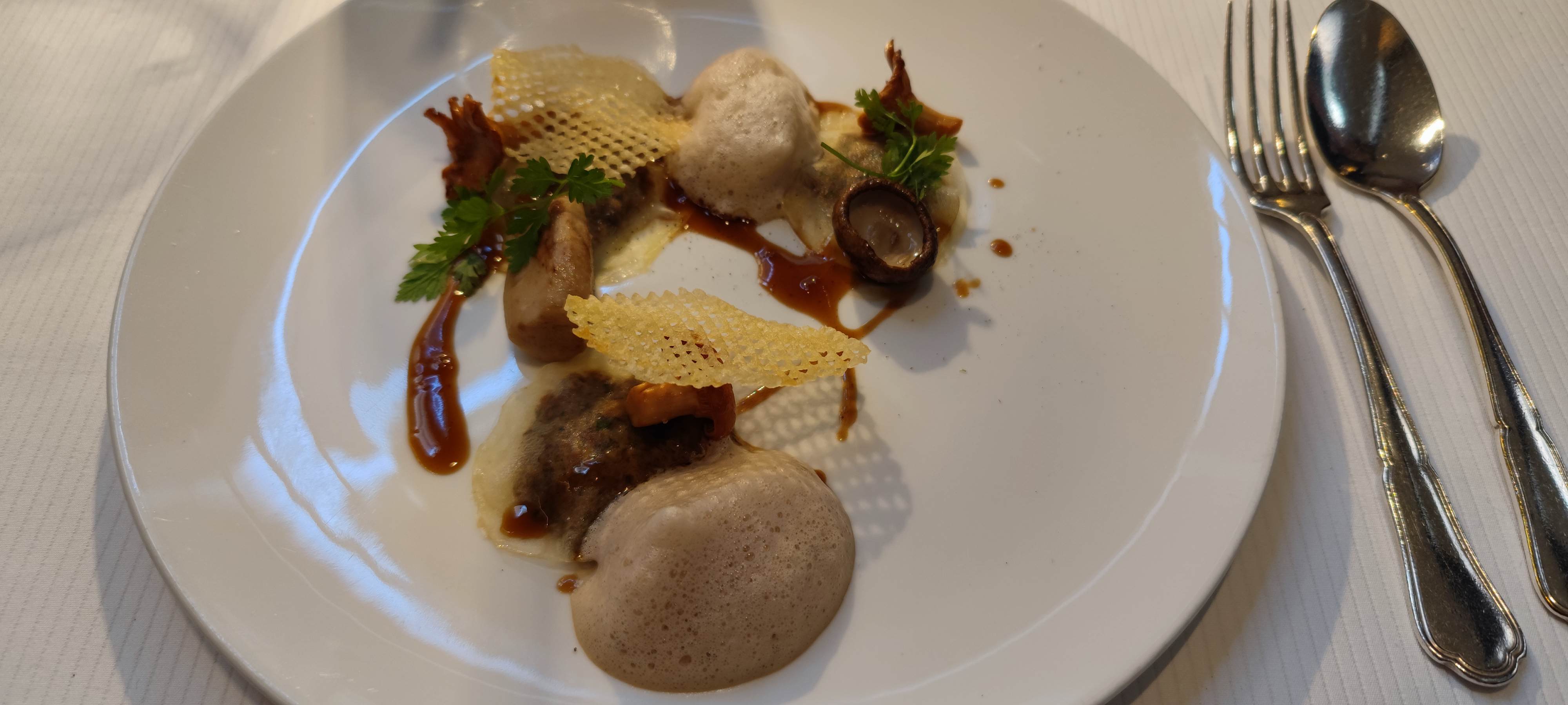 Somptueux. Mets prestigieux et raffinés. Présentation digne de l'orfèvrerie.