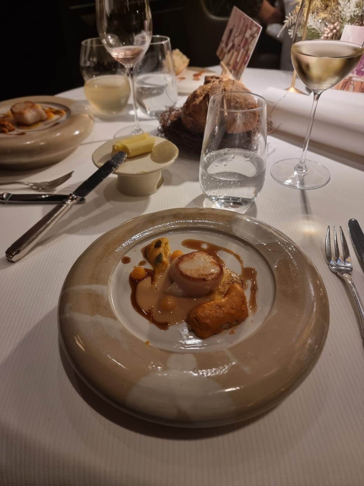 Mon épouse et moi-même avons passé un moment merveilleux pour fêter nos 40 ans de mariage. SERVICE impeccable , plats délicieux. Un tout petit bémol : mon épouse avait dit qu’elle n’aimait pas les abats et on lui a servi un rognon !.Je retiens particulièrement le céleri cuit en croûte de sel et farci pour accompagner la langoustine. Dessert exceptionnel également. Un restaurant d’exception à connaître !
