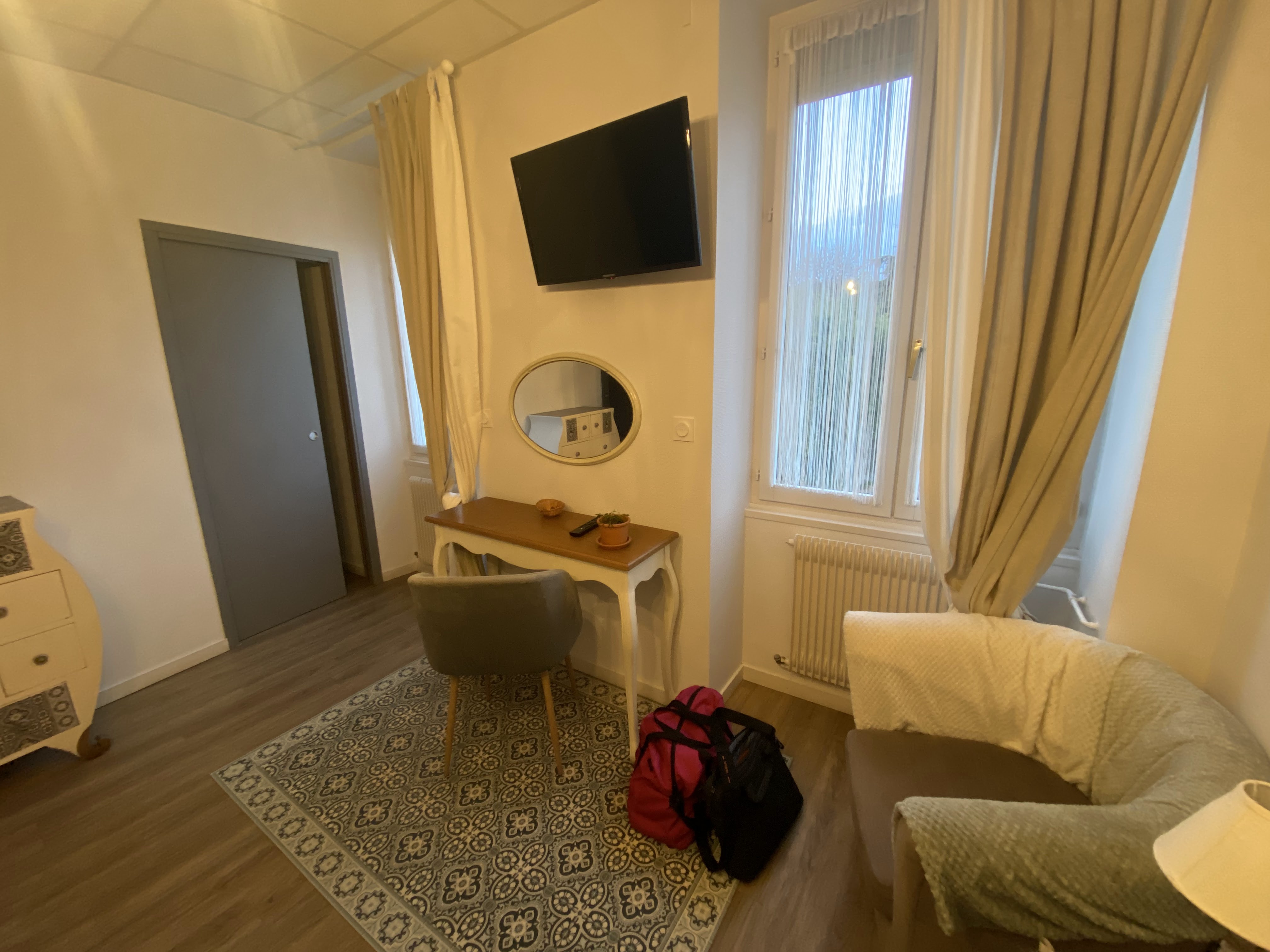 La chambre est très bien bonne literie superbe vu pour ma part . Cependant j'enlève 1 étoile pour l'accueil médiocre du monsieur qui travailler le soir, le niveau a été rattraper par celui qui du matin et bien heureusement . Le petit déjeuner est copieux je conseille cet endroit, a la condition de ne pas tomber sur Mr grincheux 😉