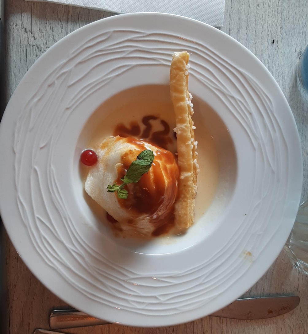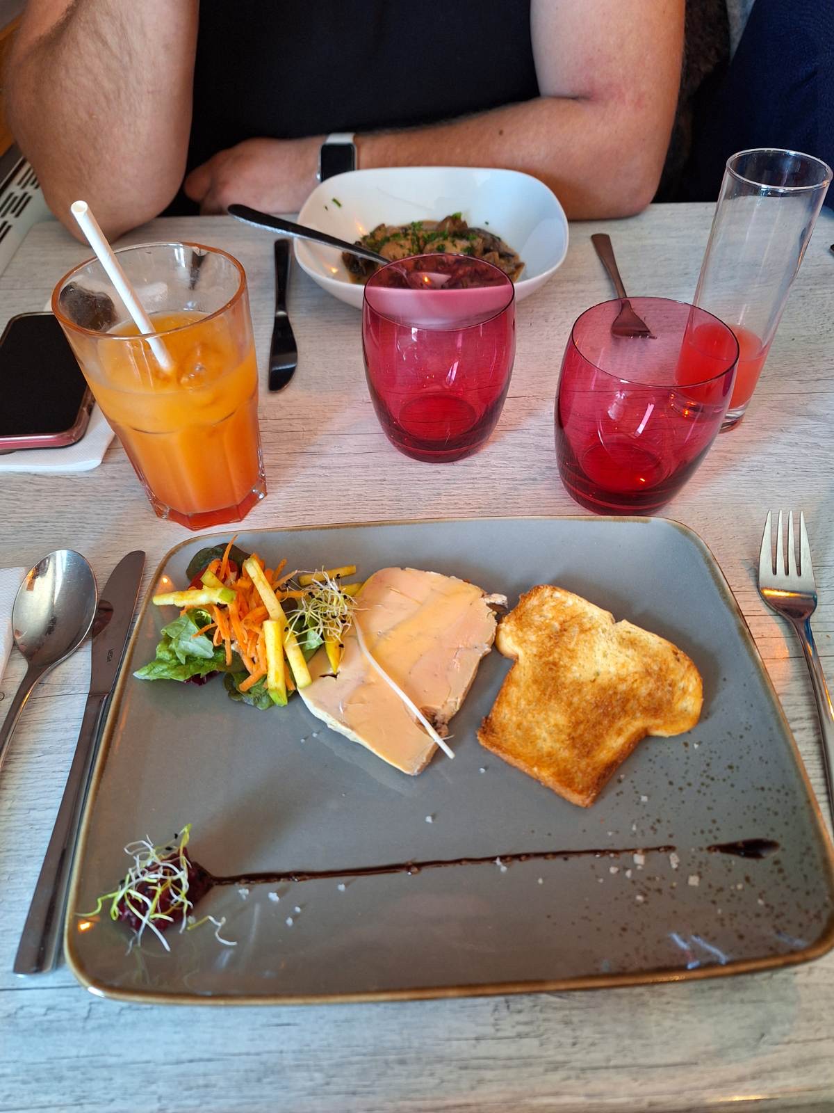 Un peu déçu, quelques réglages à faire pour que cela soit parfait. Petite salle, un peu entassé les uns sur les autres (temps de pluie sinon il y a une terrasse). Les grenouilles manquaient de cuisson, elles n’avait pas le goût croustillant que j’adore , elles étaient farineuse et on ne sentait pas le goût de la persillade… Les serveurs(es) sont sympathiques, une équipe de jeune. Néanmoins, le week-end se n’est pas la semaine donc on a plus de temps donc laissez nous le temps de finir notre assiette avant de débarrasser. Pareil pour le service c’était trop rapide on a eu l’apéritif en même temps que l’entrée…