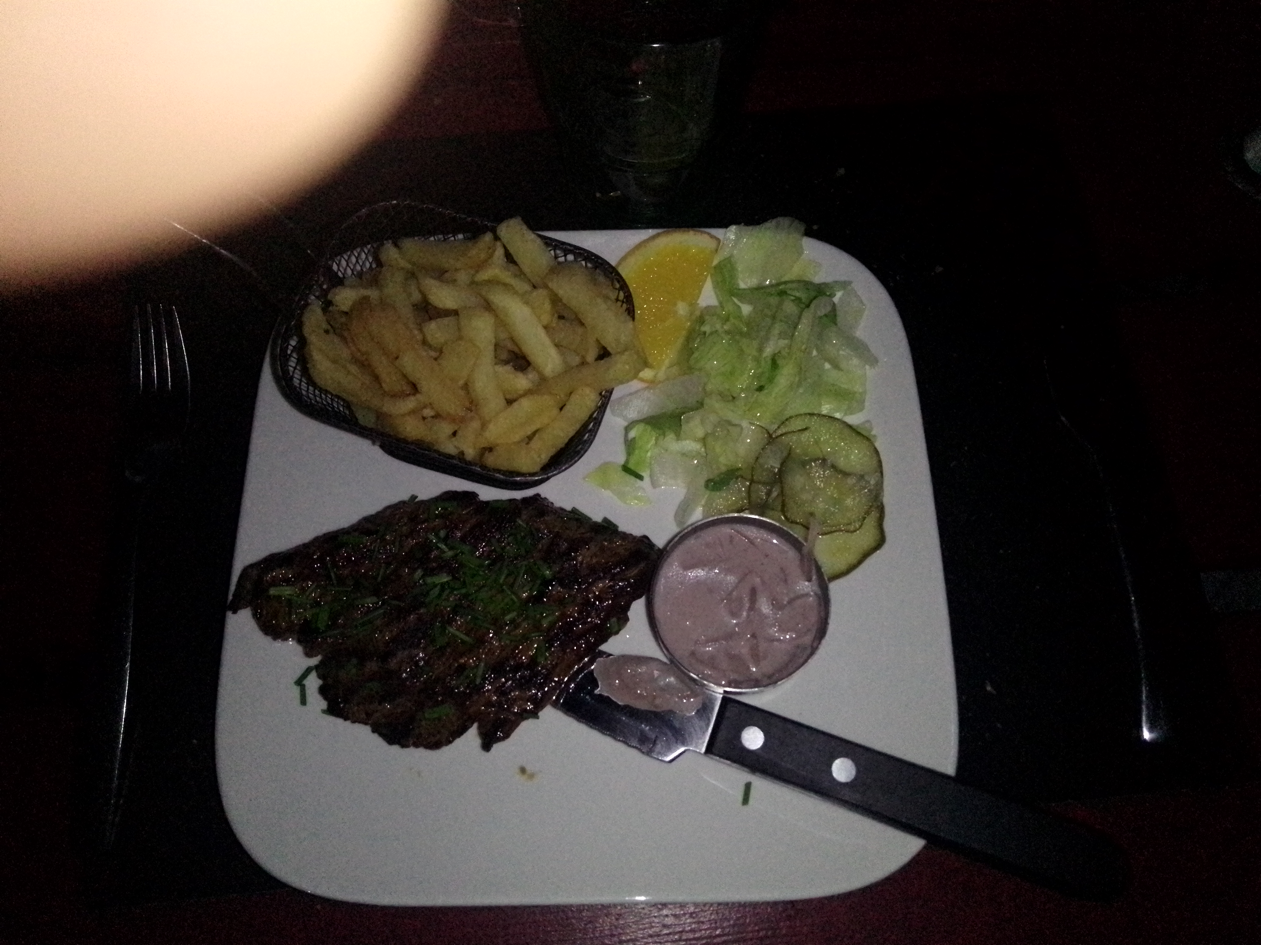 Une brasserie, simple pas exceptionnel, de la bavette, une escalope panée, brochettes de gambas avec du riz. Ne vous attendez pas à une gastronomie exceptionnelle ou à de belles découvertes inattendues. C'est dommage, que l'on ne retrouve pas plus d'originalité sur la carte. Il manque les essentielles notamment du poisson totalement absent de la carte.