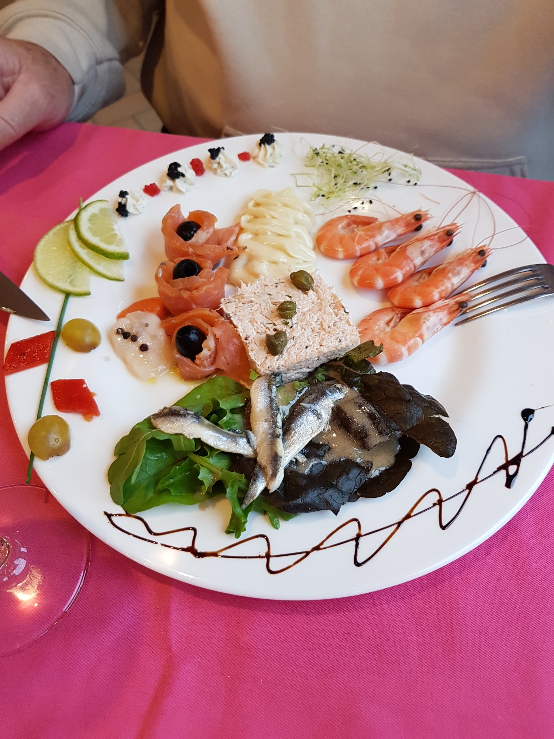 Cadre très agréable mais côté restauration pas génial assiette de poisson seul le saumon fumé été bon et la mayo qui été maison côté plat la cuisse de canard servie froide la sauce au poivre le seule goût quel avais c est celui de l arôme patrel et tous sa pour 30 euro pas vraiment génial
