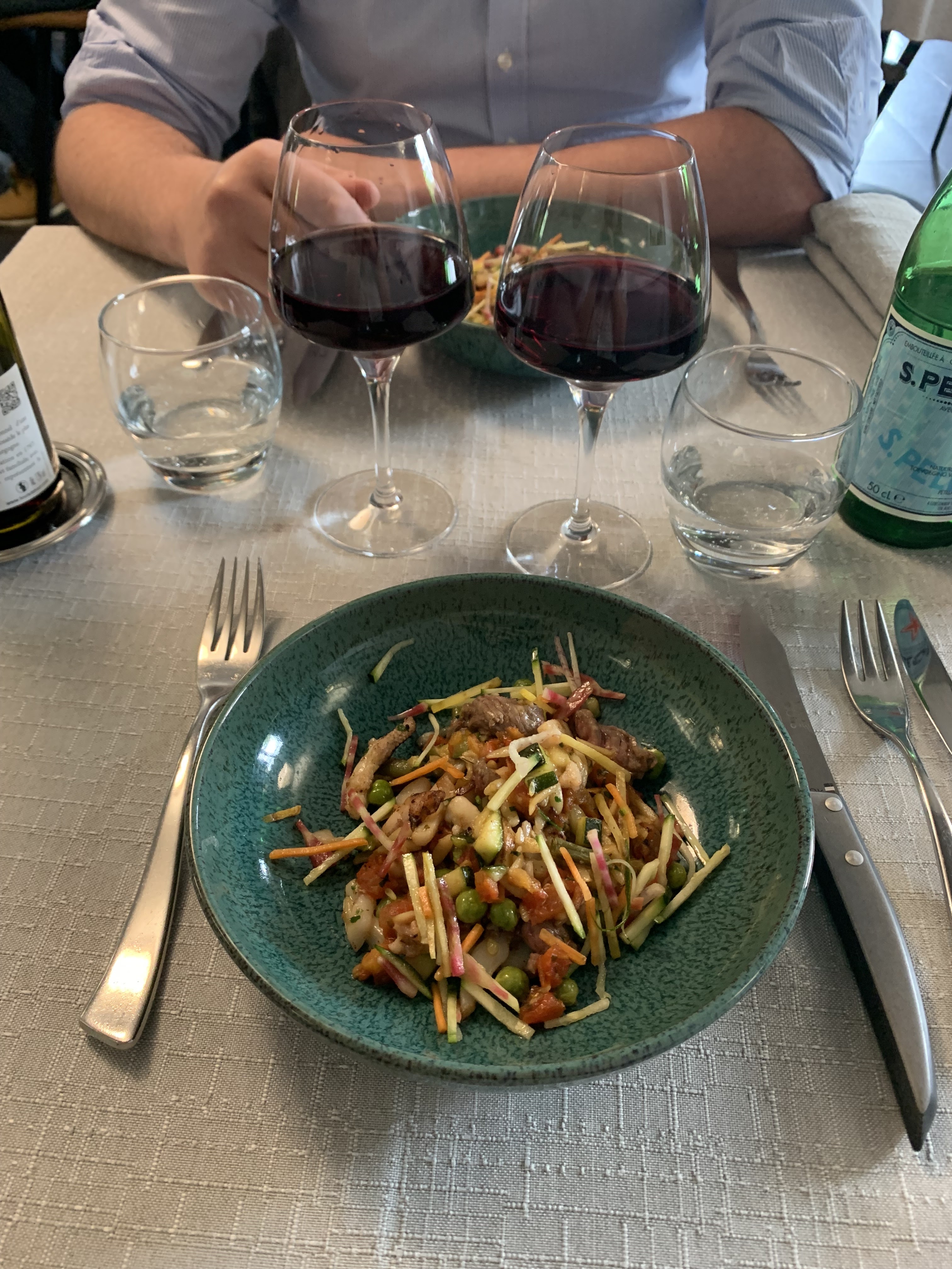 Nous sommes venus hier soir, habitués de ce restaurant que jusque là, nous adorions. Donc un mardi soir nous arrivons à 21h10, le chef nous dit Bonsoir et aussitôt entrés nous dit Vous avez vu à quelle heure vous arrivez ? vous n'irez pas boire votre apéritif en bas dans le jardin car nous voulons finir tot ce soir, les employés sont déjà à 55h de travail par semaine...EUH, le temps que nous comprenions qu'il ne s'agissait pas d'une blague, nous nous sommes installés, bien refroidis par cet accueil vraiment TRES limite voire inadmissible ! Certes nous arrivions un peu tard mais nous voulions simplement une table de 2 pour diner n'importe où sur la terrasse, rien de plus...La cuisine reste bonne sans être exceptionnelle non plus...Le Spritz à 11€ et l'addition finale à 113€ pour deux nous laisse perplexes étant donné l'accueil reçu. Un peu d'humilité ne ferait pas de mal et en attendant, pour la suite, ce sera sans nous ! Rien à reprocher à la serveuse qui elle, a été très aimable.