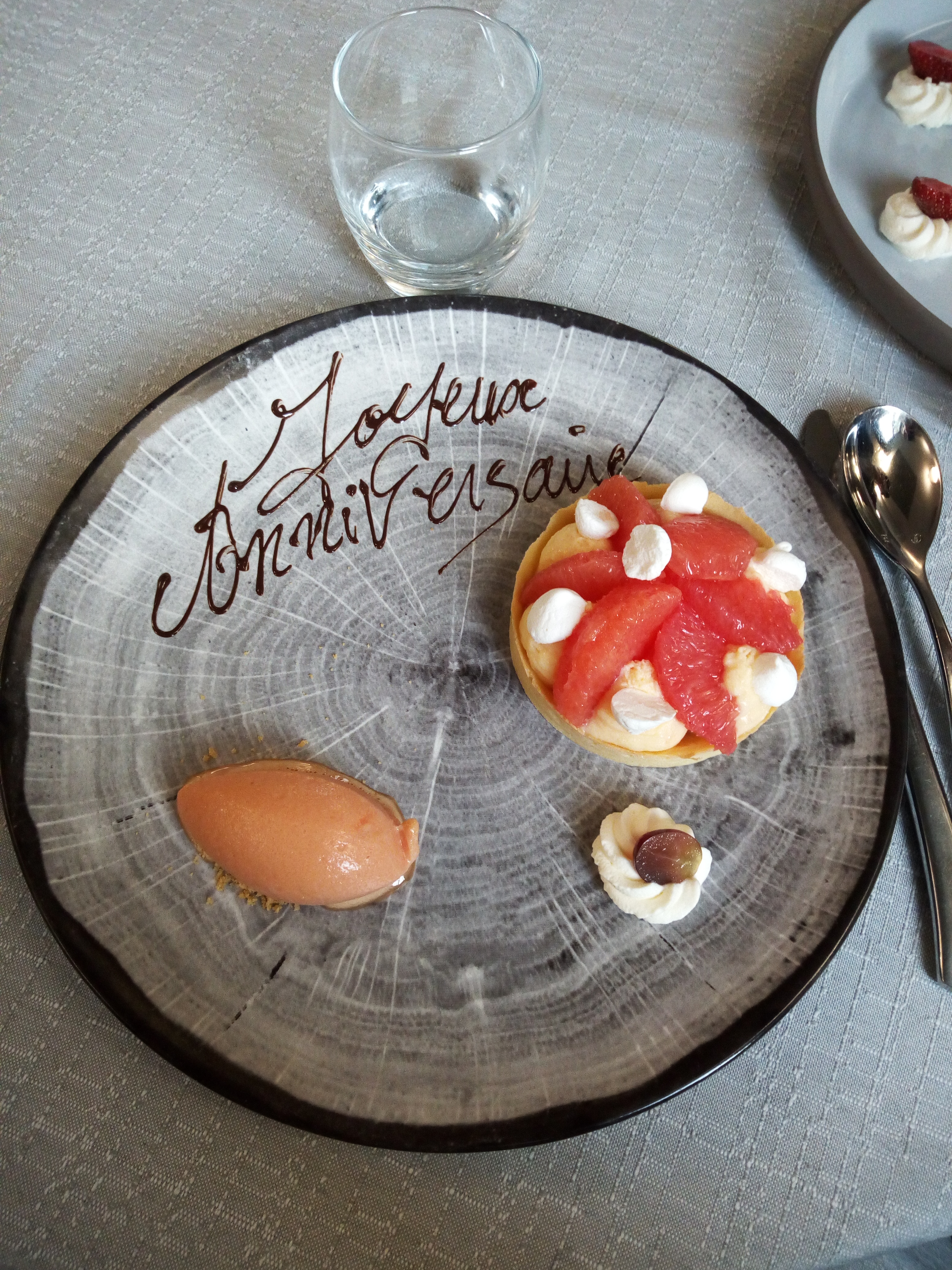 Repas d'anniversaire au top. Tout était excellent et bel effet avec le dessert dôme de chocolat. Tout le personnel est très sympathique. Merci pour cette belle soirée