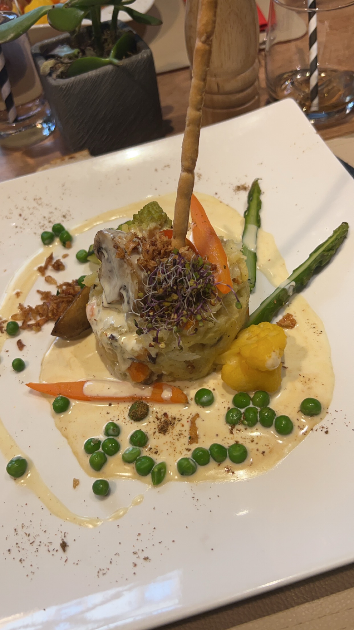 Super bon repas l’un des meilleurs que j’ai pue manger, la cuisson des légumes au risotto et la viande sont juste parfaite et très maîtrisée. Des saveurs différentes à chaque bouché. De plus le dressage et super beaux, le resto bien décoré petite terrasse simpas. Le personnels et gentils et agréables. Je recommande vivement.