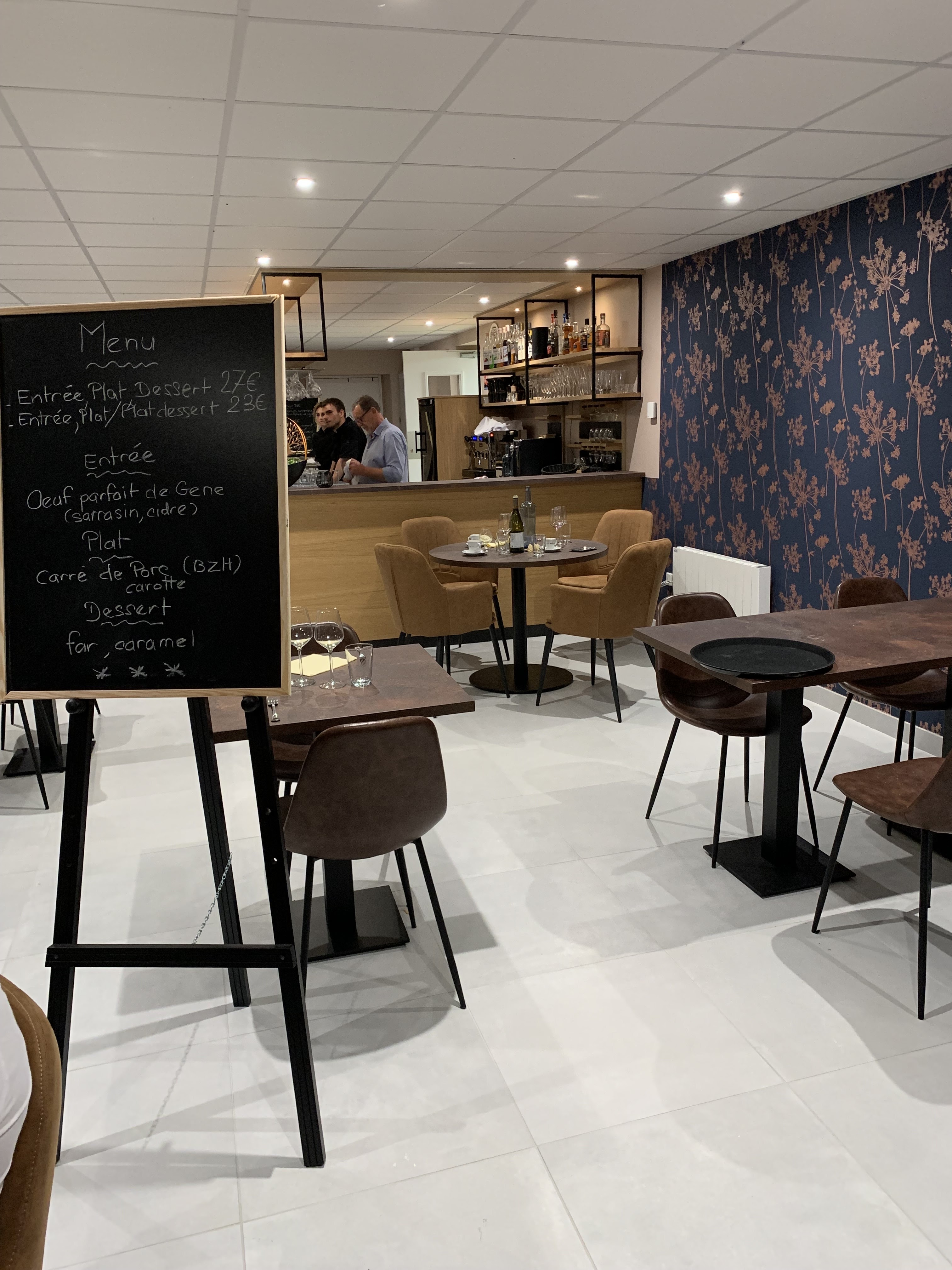 Bon accueil, décoration réussie. Dommage qu'avec les apéritifs ne soient pas servis des petites mises en bouche. Service beaucoup trop long !! alors que nous n'avions pris qu'un plat et dessert. Le choix des assiettes en grès n'est pas forcément judicieux car le frottement des couverts sur les assiettes font grincer des dents. Les points négatifs mis auparavant sont tout à fait perfectibles : ils ne remettent pas du tout en cause le repas en lui-même => l'effilochée de joue de porc était savoureuse et la part copieuse quant au dessert la tartelette est légère et croustillante. Nous avons tenu un restaurant durant 8 ans et toutes remarques constructives étaient les bienvenues. Bonne continuation