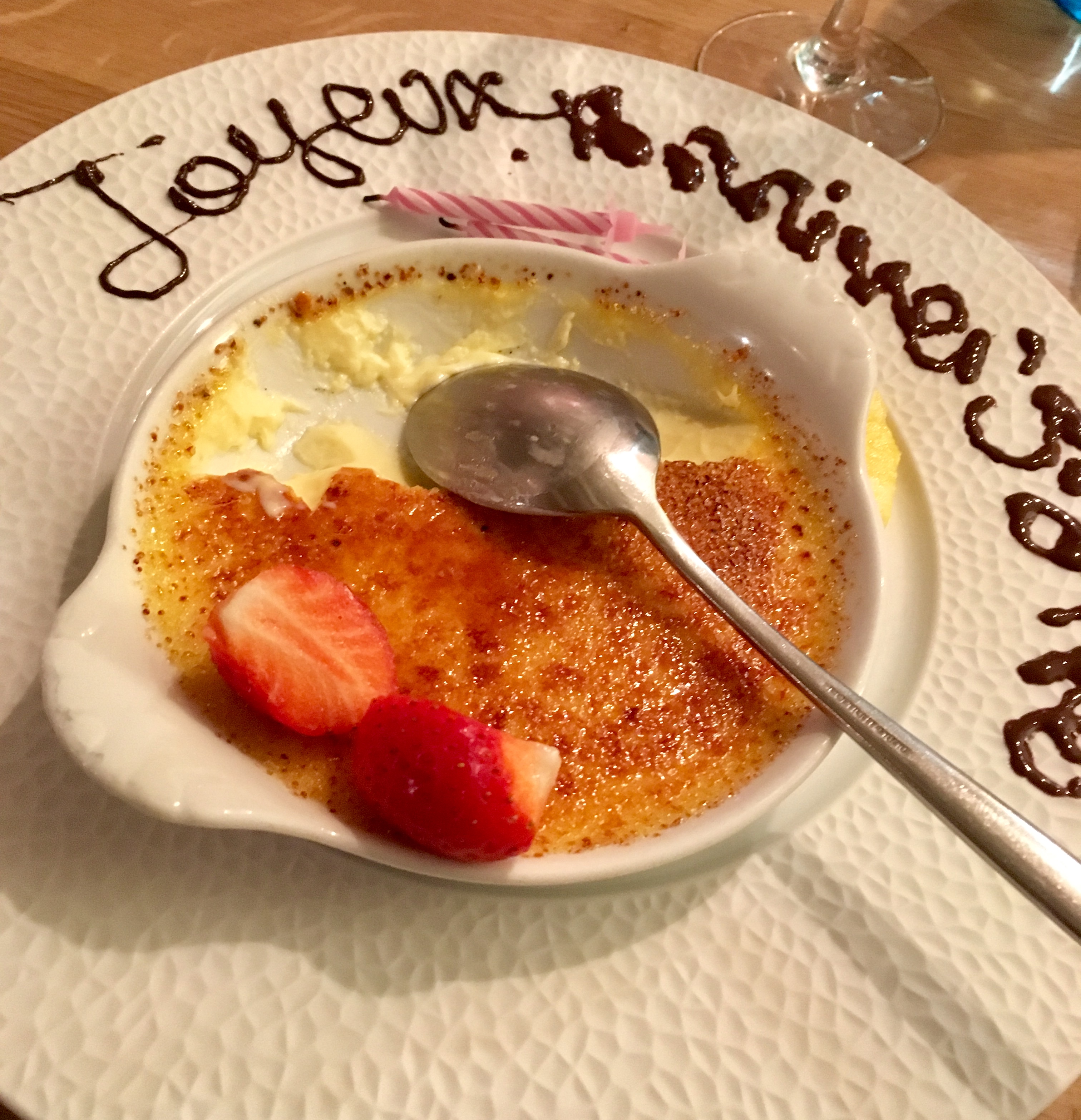 Très bonne cuisine comme d habitude, par contre au niveau du service, ce n etait pas du tout agréable voir déplacé sans comprendre pourquoi. Notre soirée d anniversaire en a été gâchée.
