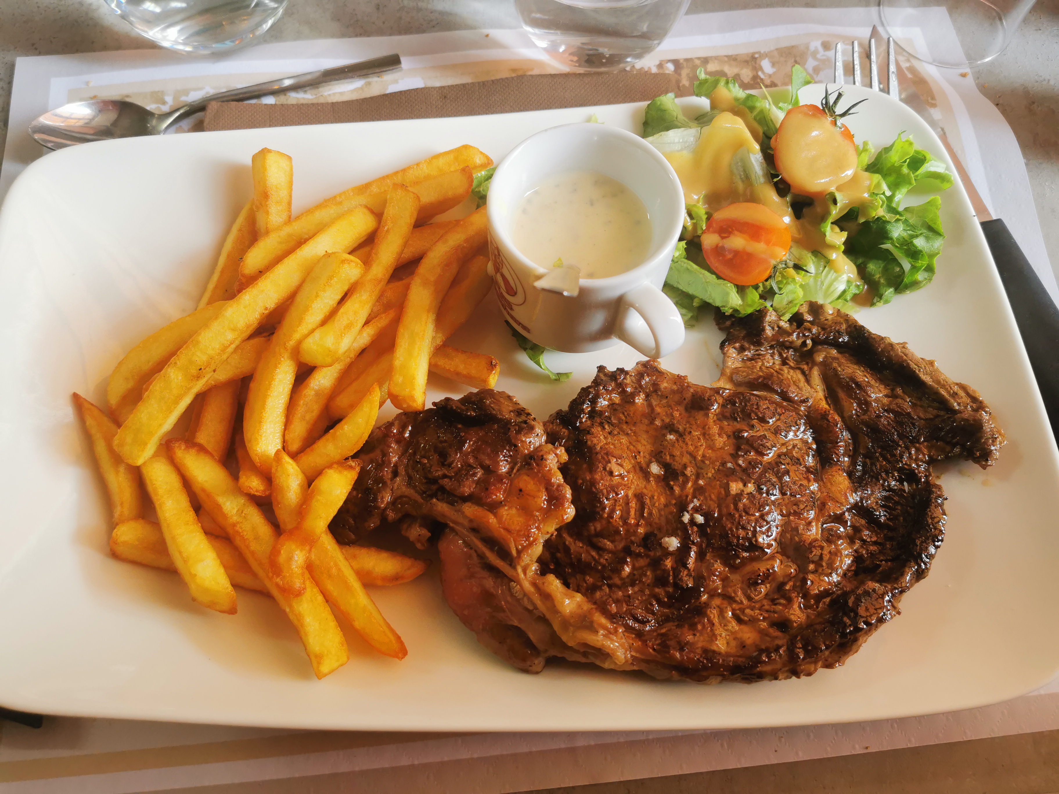 Prix élevé pour une entrecôte de qualité moyenne, servie avec ratatouille et chou braisé. Des progrès à faire