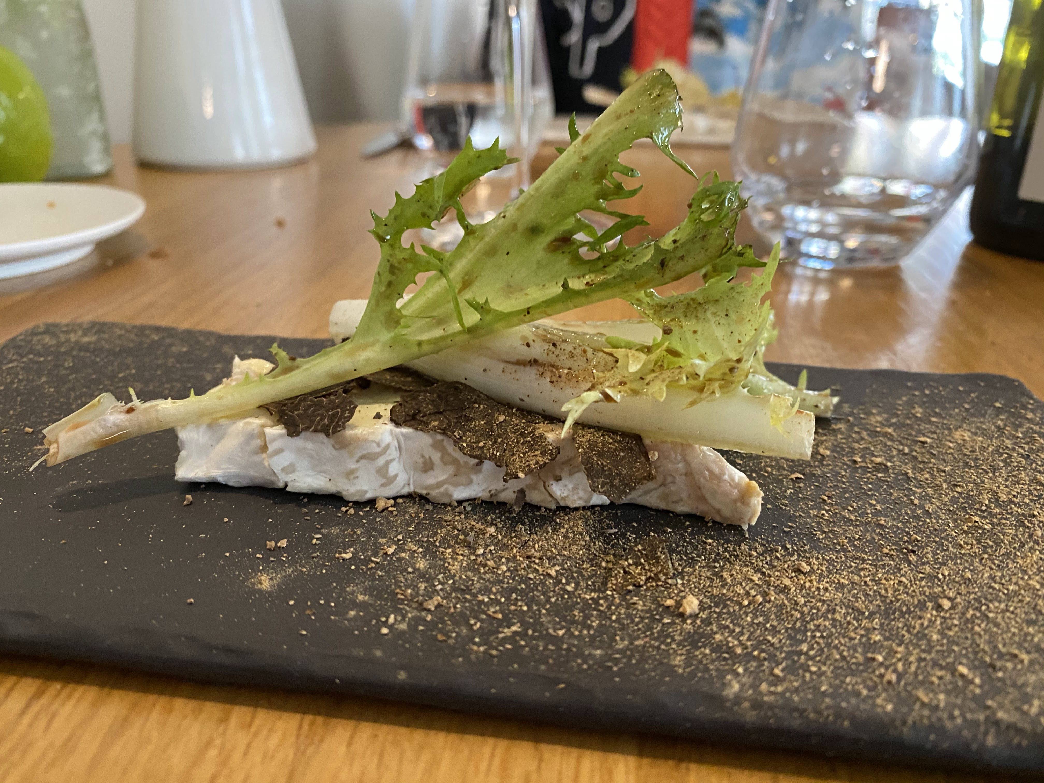 Lieu très agréable et innovant. Un menu unique garant de la fraîcheur des plats une carte des vins avec des prix doux et de bons choix. Les assiettes et le menu de haut vol qualité des produits et des cuissons au top. Service sympathique avec le sourire. Très très bien les photos parlent toute seules. La ville est sympa et mieux vaut réserver pour cette table au qualité prix imbattable. Petit hôtel de charme juste en face pour le dîner.