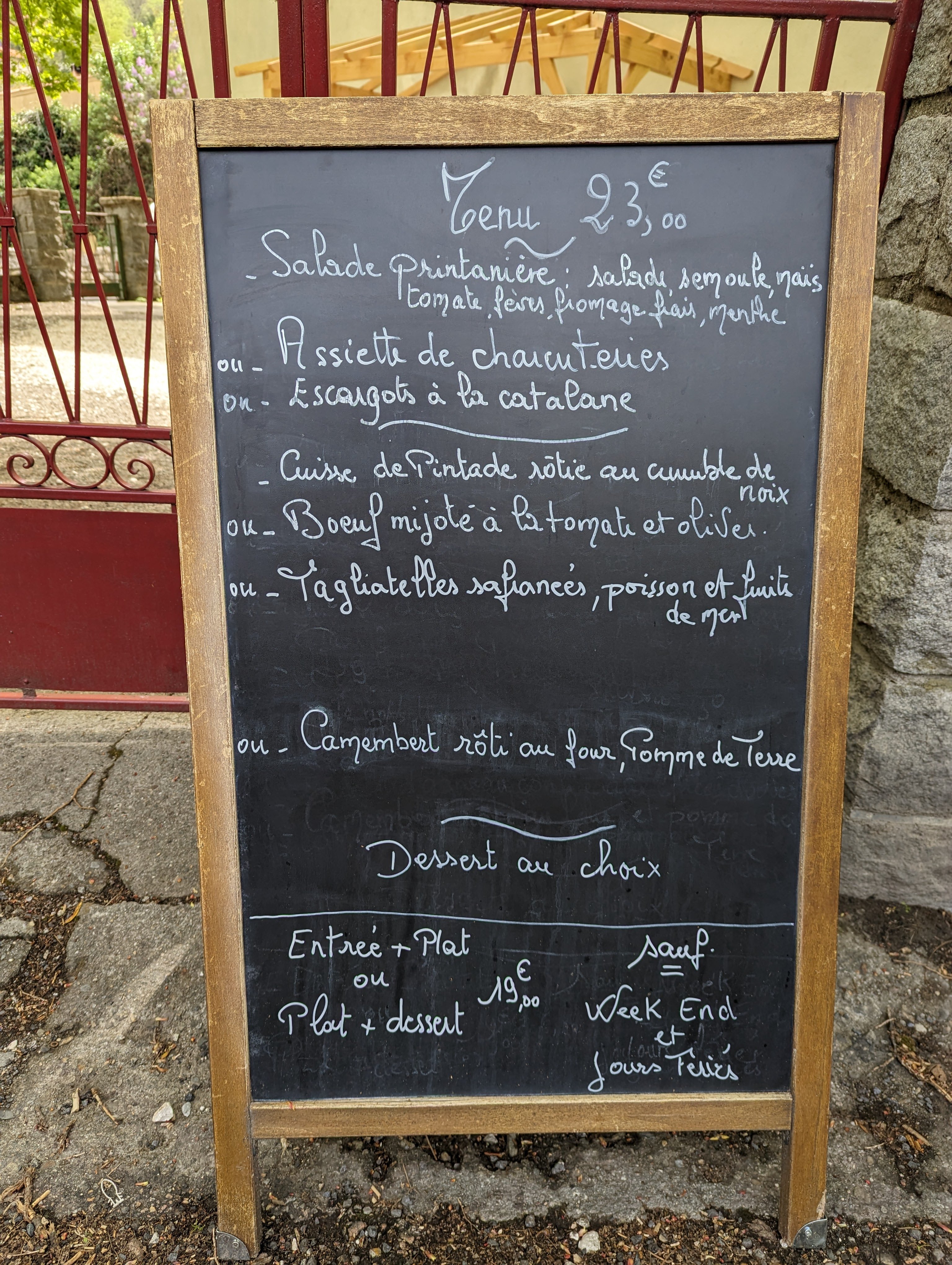 Parfait, à l'ombre à l'extérieur sous les tilleuls. Menu aux choix à un prix très abordable. Accueil parfait. Je recommande, et nous y reviendrons.