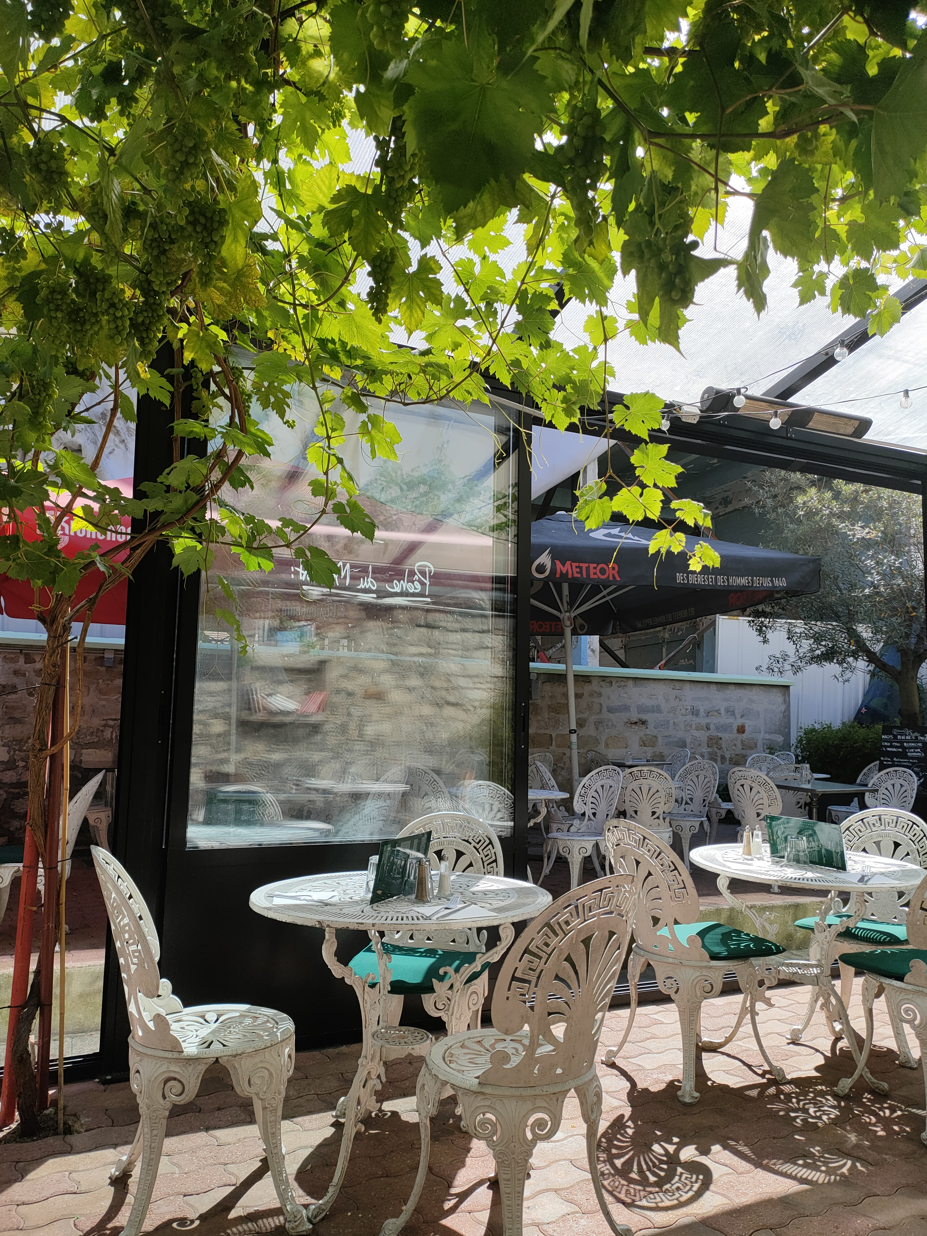 Quelle belle surprise les terrasses au fond du jardin : une a l'air libre t l'autre couvertes avec ses jolies vignes en décoration. Un p'tit air de jardin hors de Paris, très agréable. Coté assiette : les plats du jours sont frais et les desserts enormous (tiramisu matcha et brioche façon pain perdu). Un rapport qualité prix très correct. J'ai déjà hâte d'y retourner !