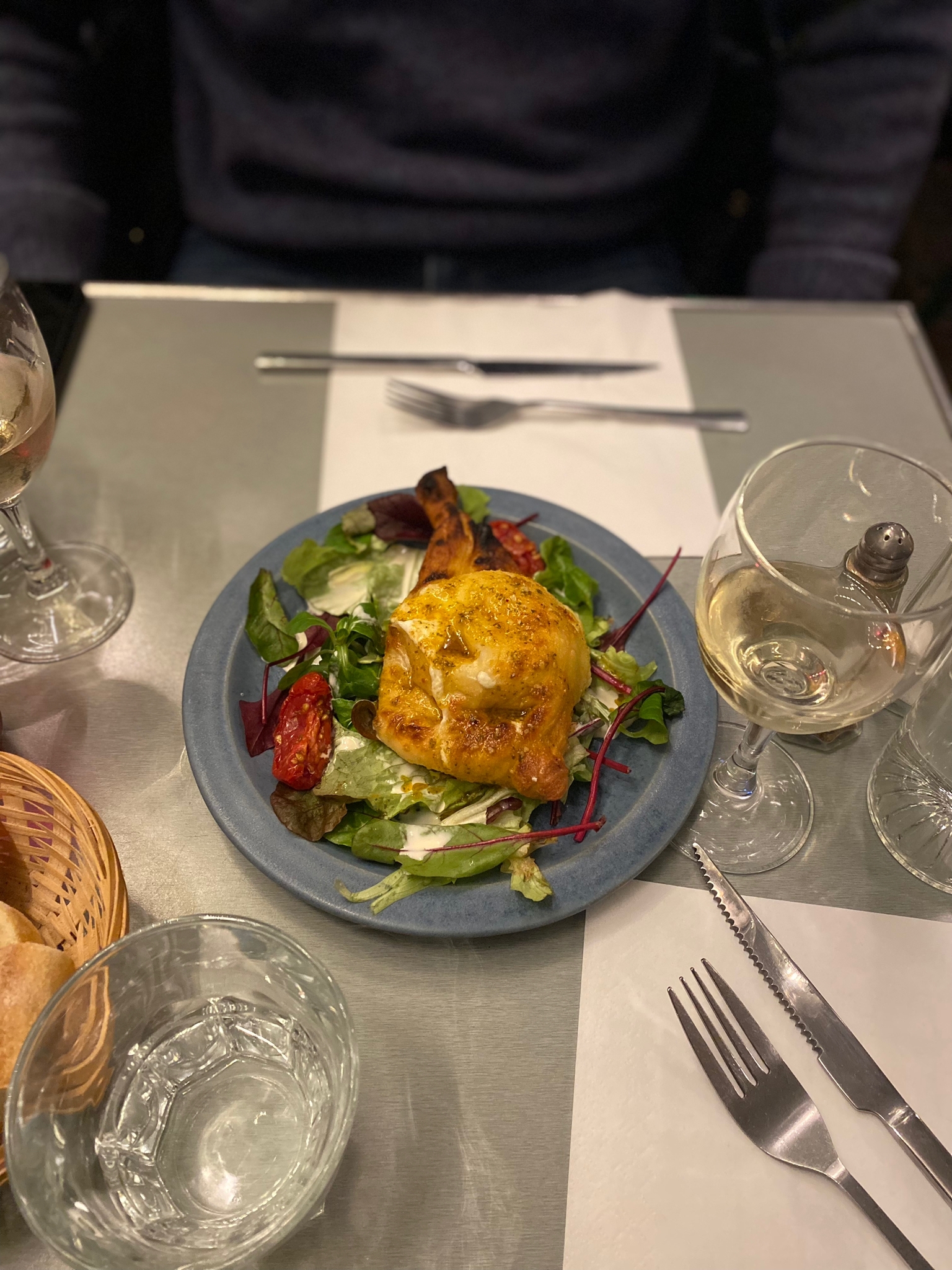 Service au top, vin blanc d'Afrique du sud super bon, fruité. Les gnocchi etaient succulents, la pizza pas mal. Je n'ai pas apprécié les desserts, la Brioche était délicieuse, le caramel etait horrible, carbonisé.