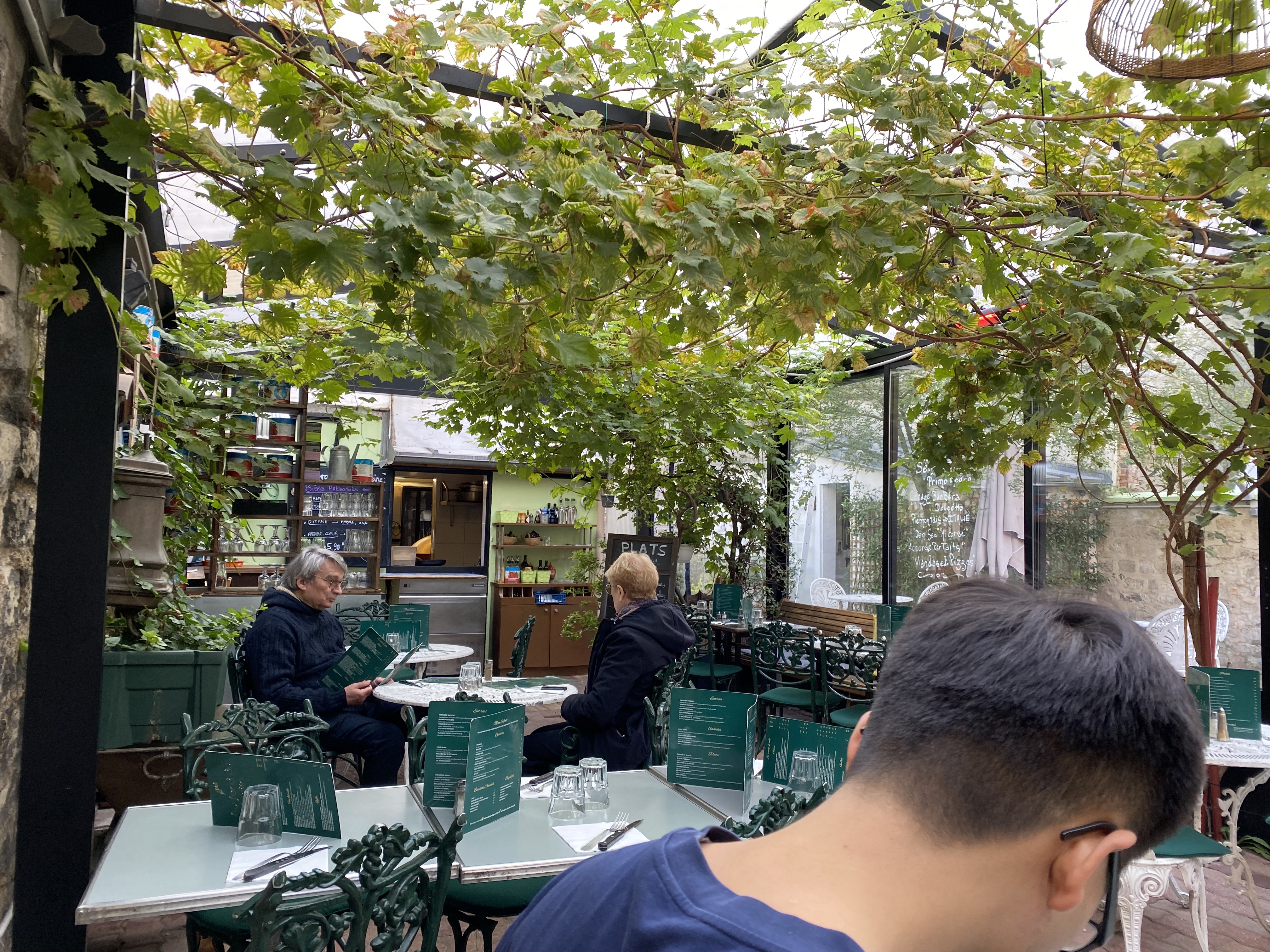 Comme son nom l'indique petit coin de jardin en plein milieu de Paris, cadre sympathique. Bonnes pizzas, menu plutôt de brasserie (hamburger, tartare, salades....), bons desserts. Prix un peu élevé à mon goût mais on paye aussi le cadre peu commun.