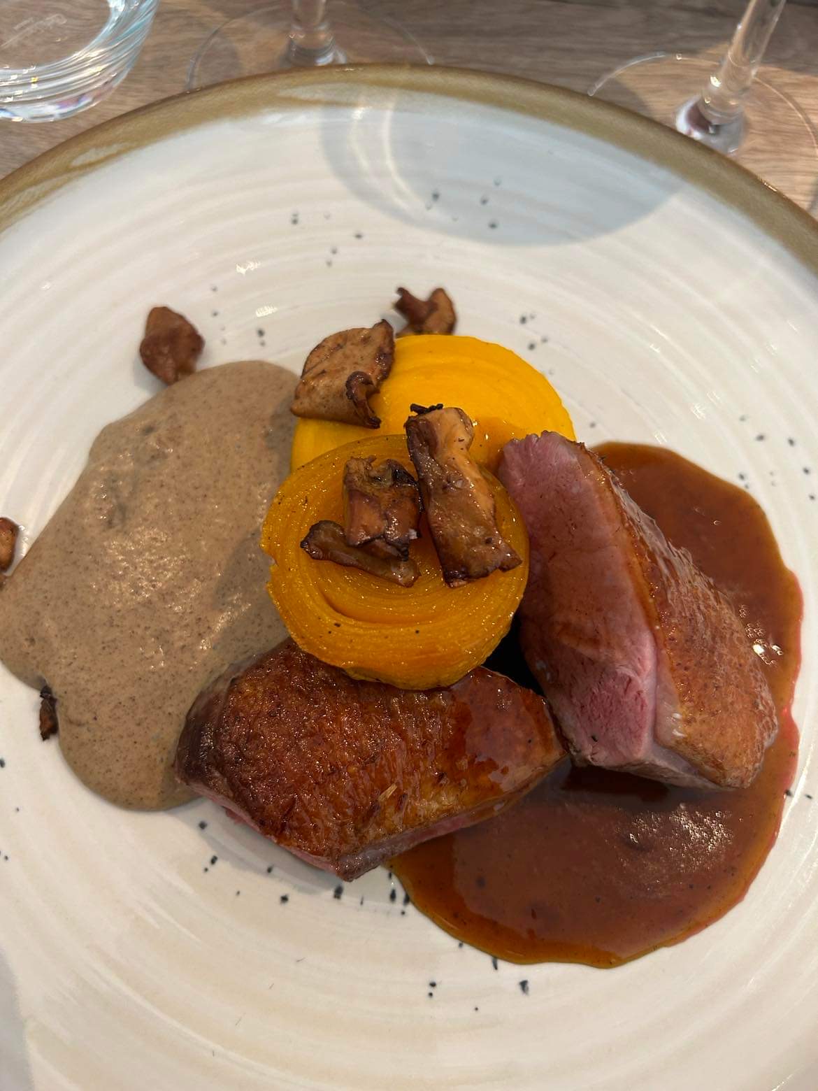 Une première visite qui ne nous a pas laissés indifférents. Des mets très bien cuisinés (même si nous ne sommes pas des adeptes du sucré /salé) et une présentation parfaite. Le service au top et l'attention du chef cuisinier qui passe voir les clients à la fin du repas nous ont convaincus d'y revenir.