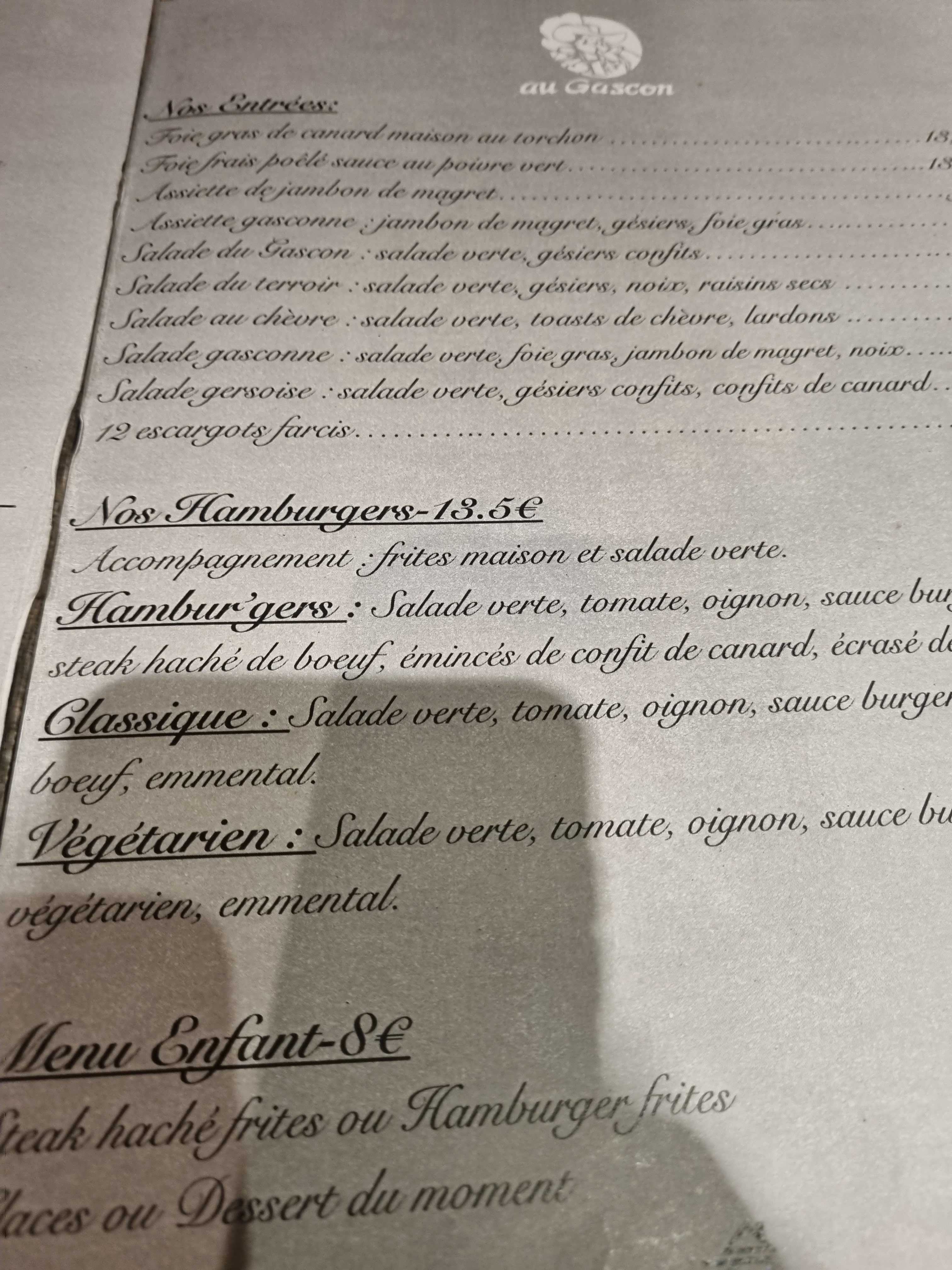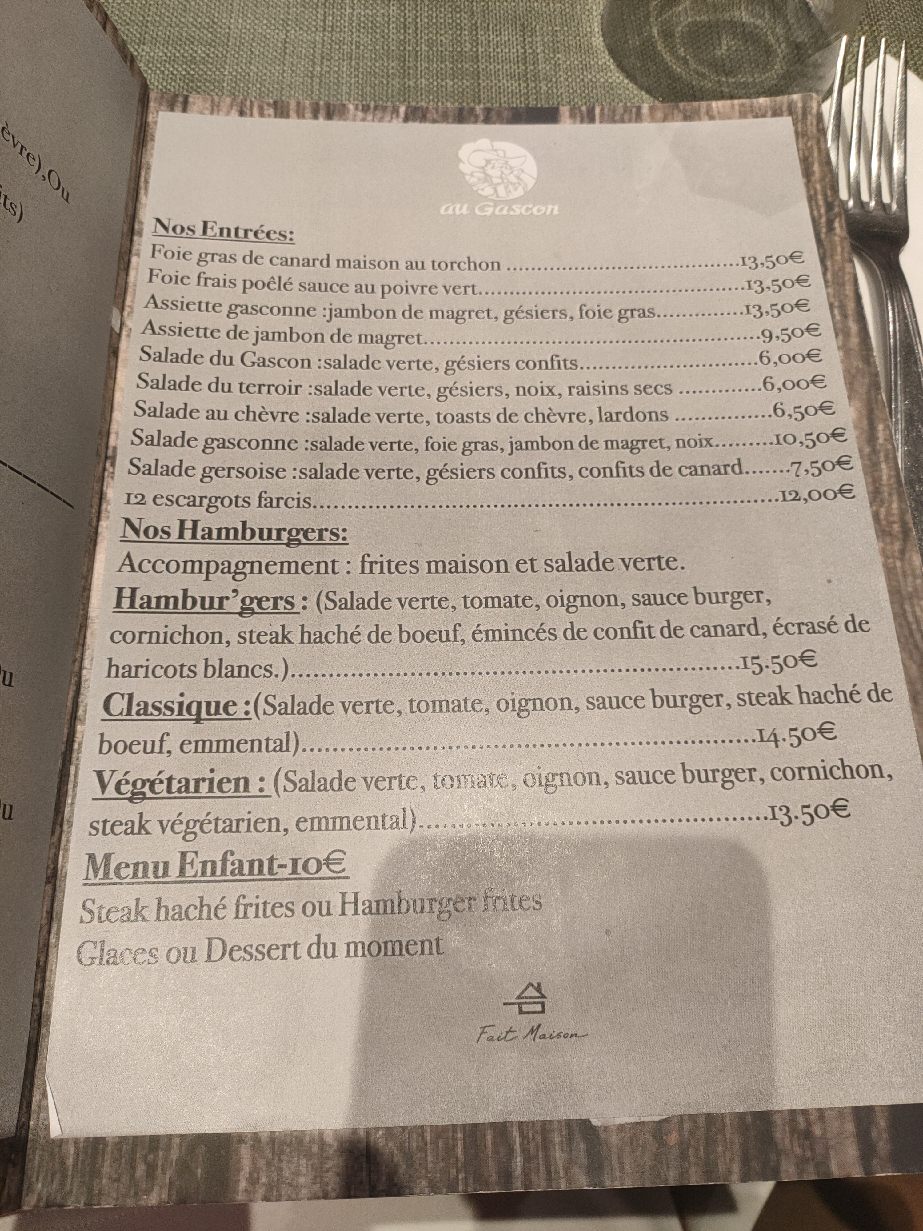 Si vous cherchez un resto de cuisine locale avec un excellent rapport qualité prix c'est au Gascon qu'il faut venir.. Plusieurs menus 18 €/25€/30€ ou à la carte . Je conseille salade gascone, magret grillé, baba gascon ou croustade . Le patron nous a offert un verre d'armagnac..je reviendrai !