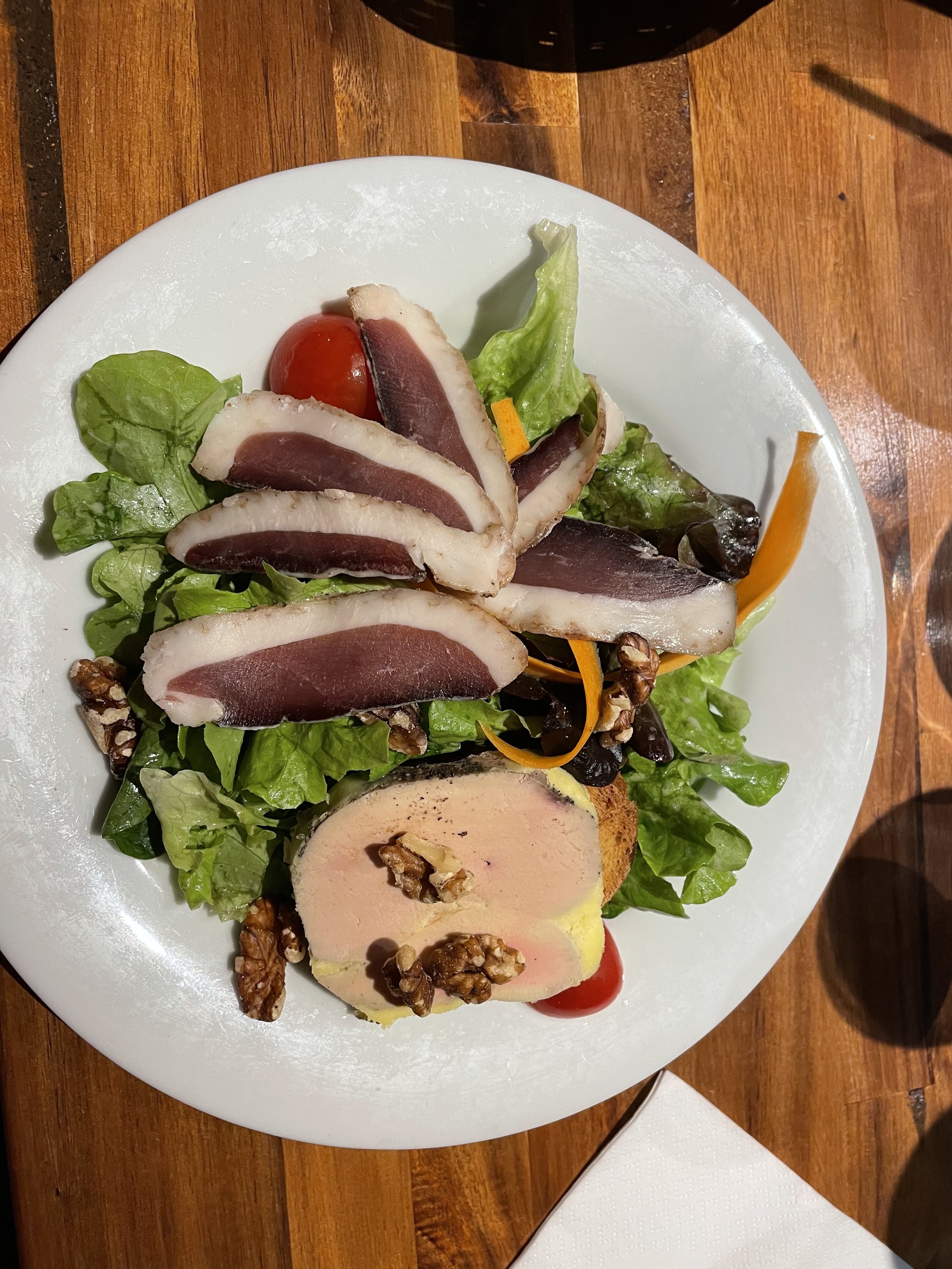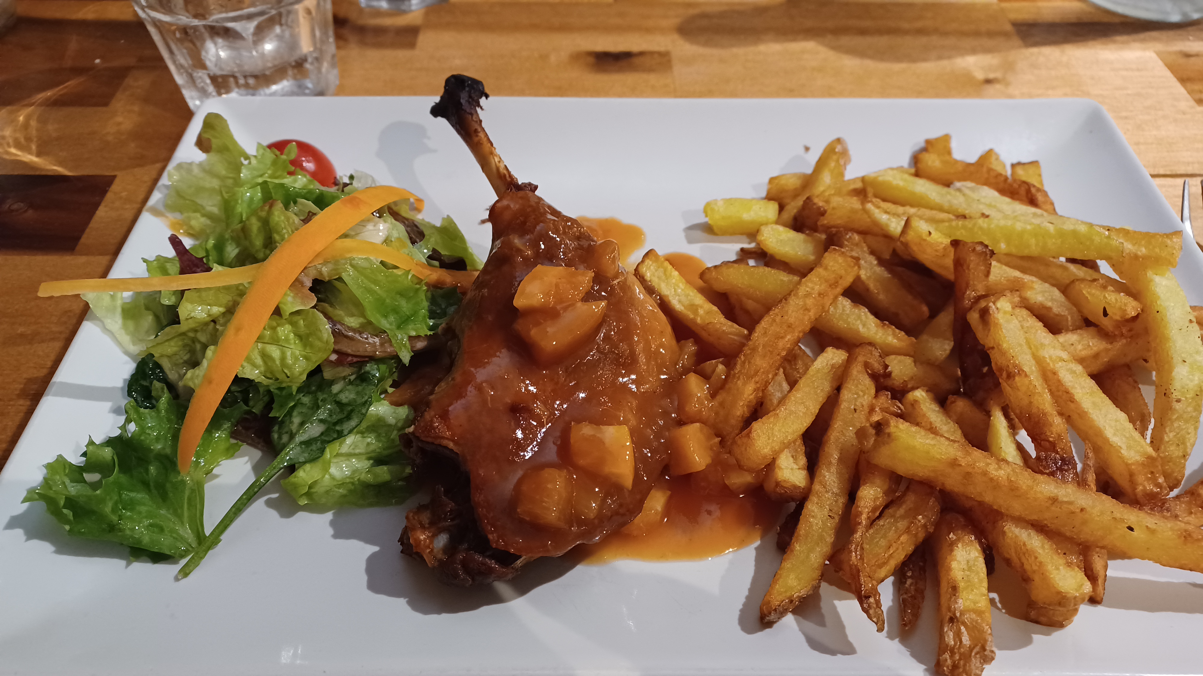Super bon, service efficace et agréable. Salade gasconne et confit de canard aux frites délicieux ! Je recommande. Très bon rapport qualité / prix.